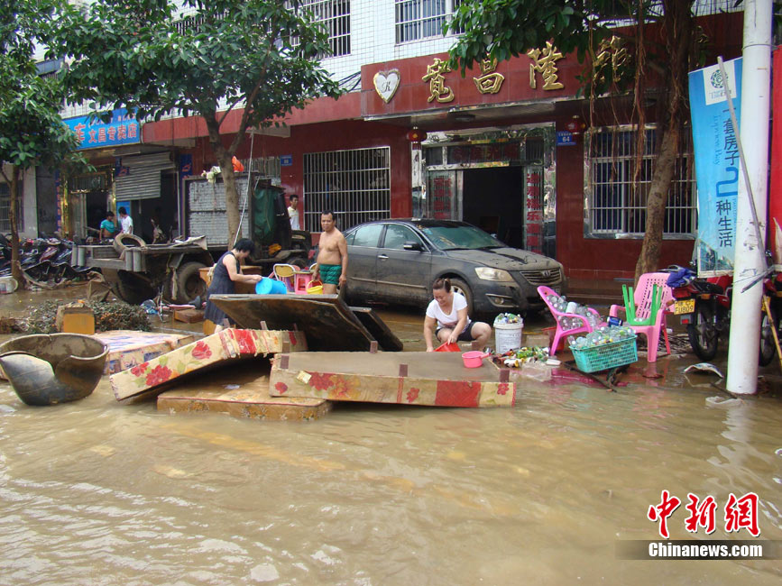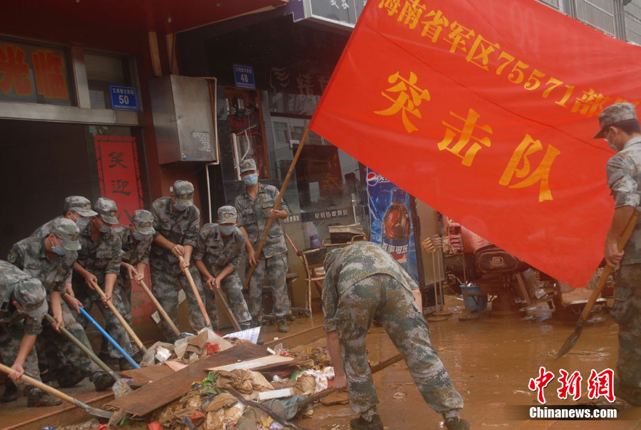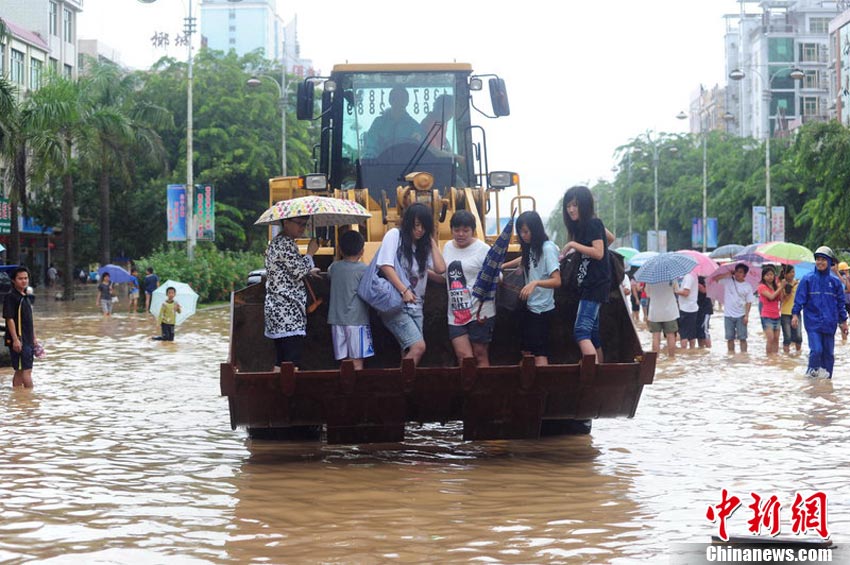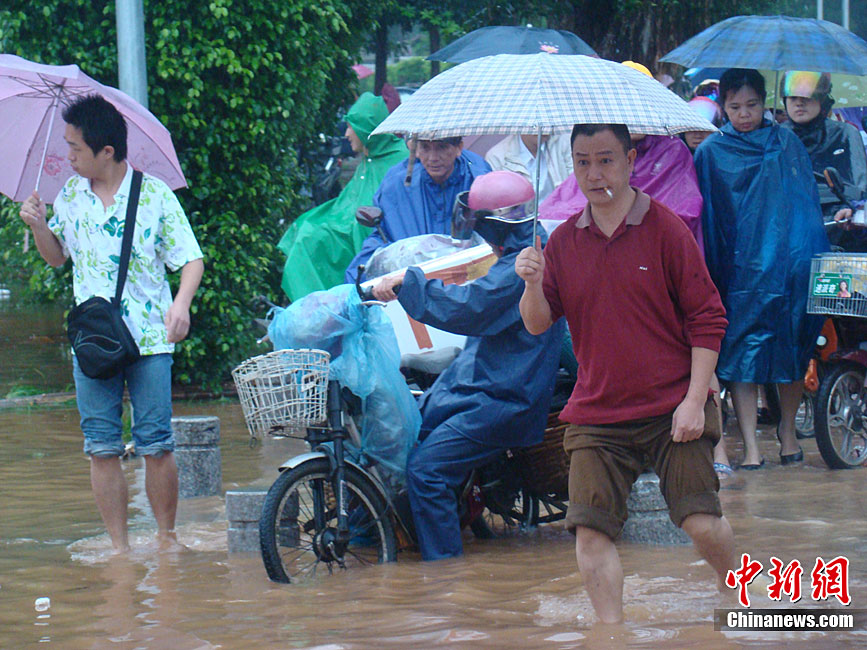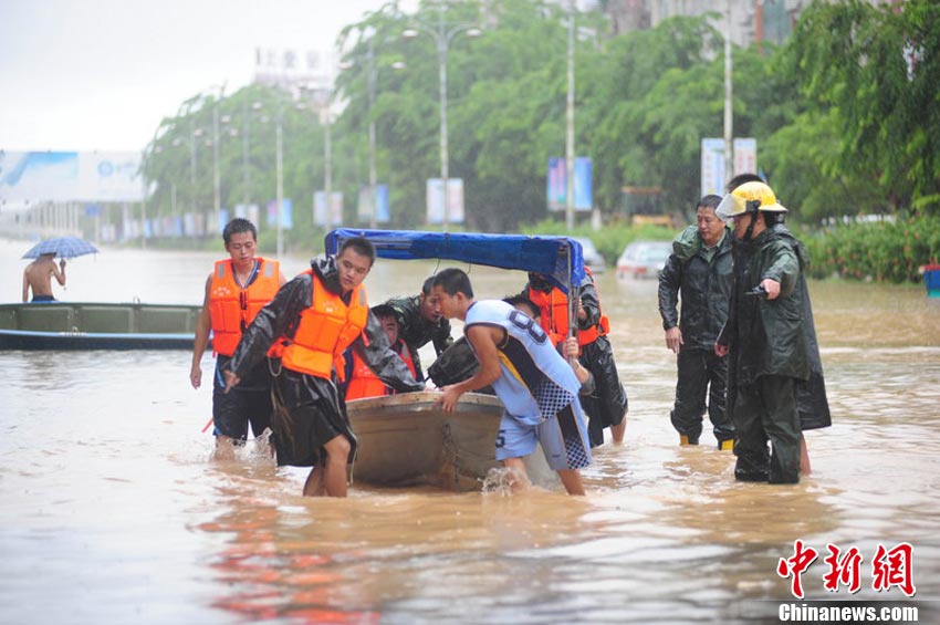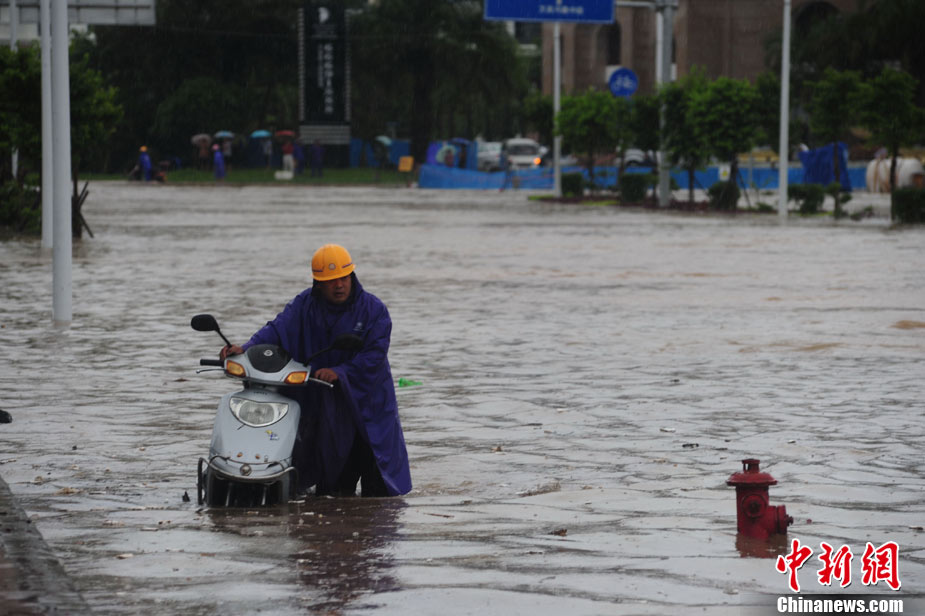 10月6日,受持續(xù)降水影響,海南海口南渡江附近村莊被洪水淹沒。截止6日晚上8時半,海南全省133萬人受災(zāi),已轉(zhuǎn)移群眾14萬多人。今年國慶期間,海南遭受49年以來同期最嚴(yán)重強(qiáng)降雨。張茂 攝 圖片來源:CFP視覺中國