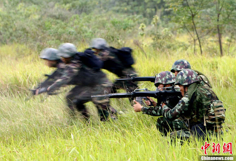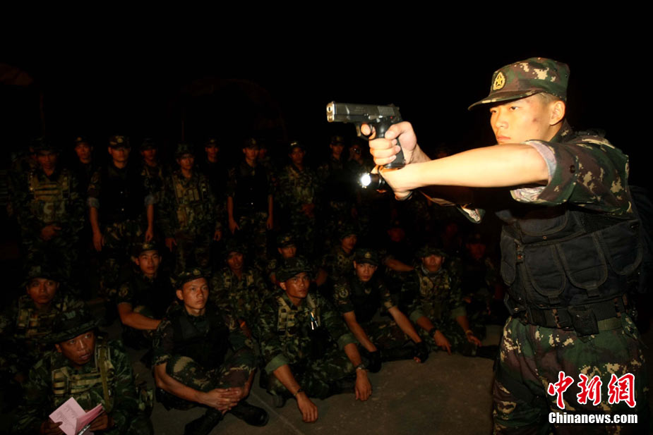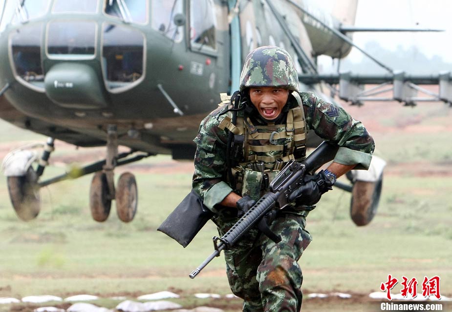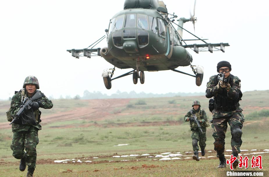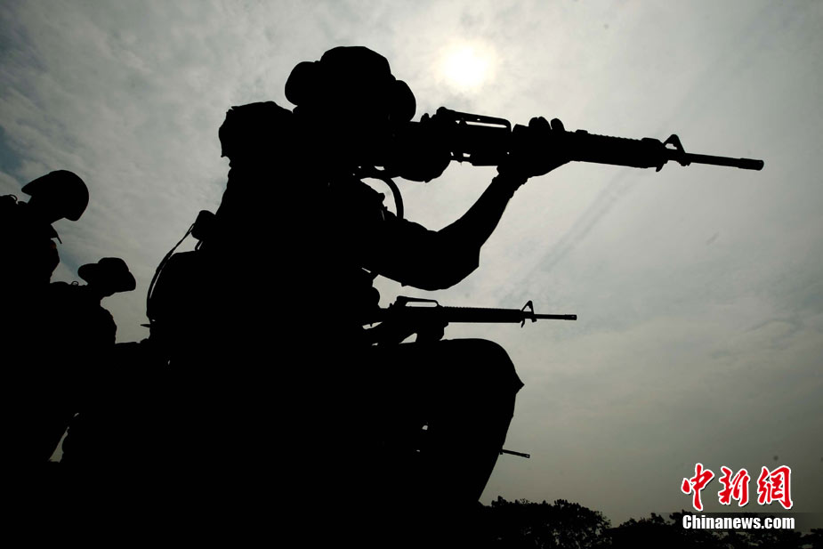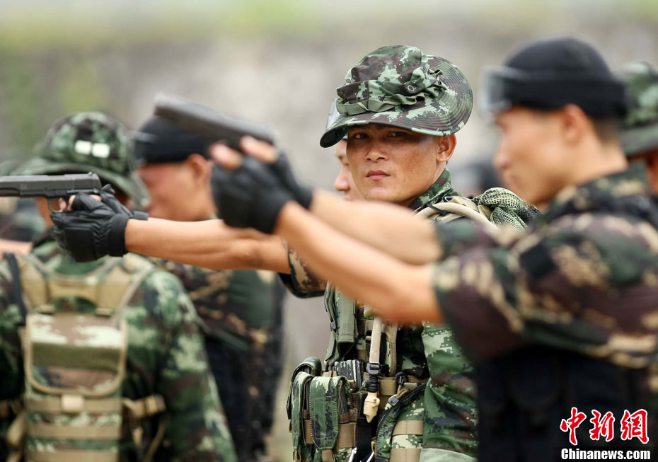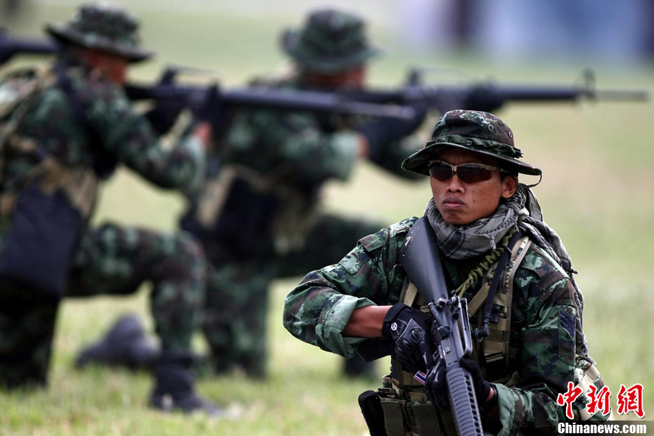 10月9日,中泰陸軍特種部隊反恐聯合訓練進入混編同訓階段,主要圍繞城市反恐基礎技能訓練、混編分隊戰術訓練等科目進行。圖為兩軍士兵進行槍械技能比賽。中新社記者 杜洋 攝