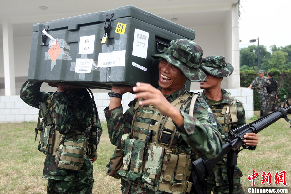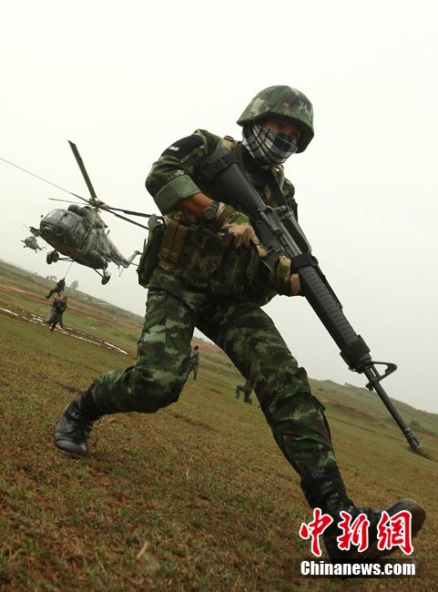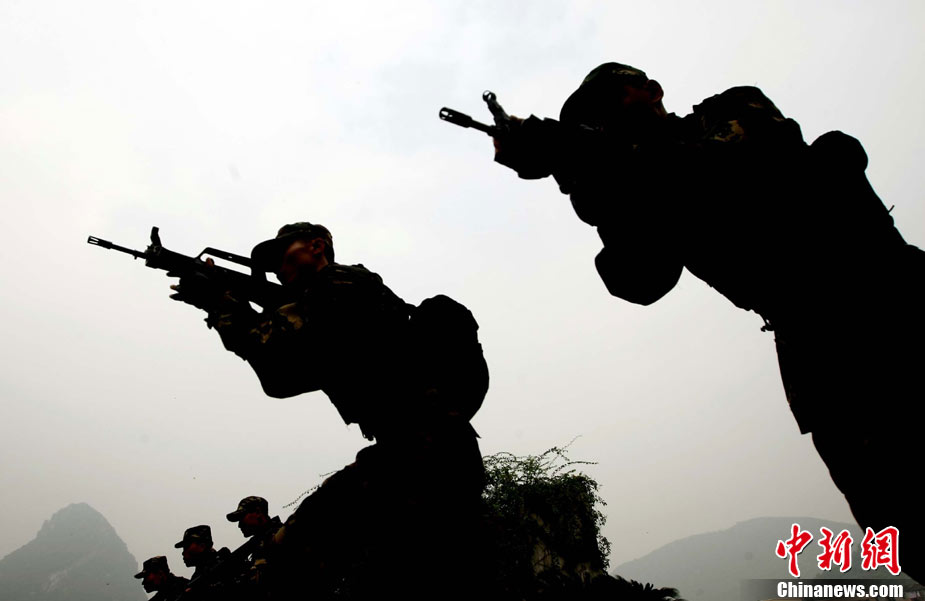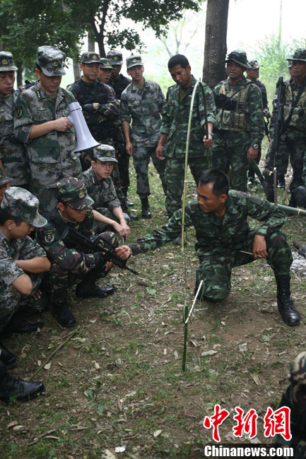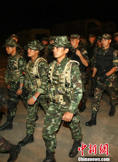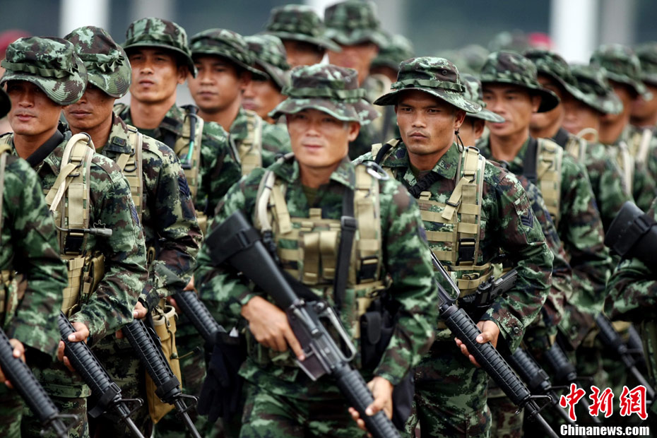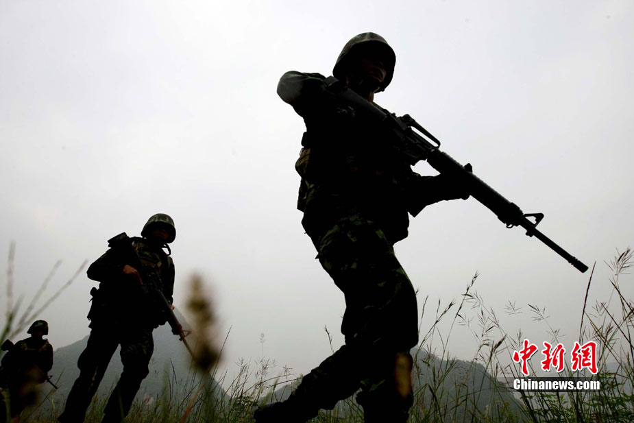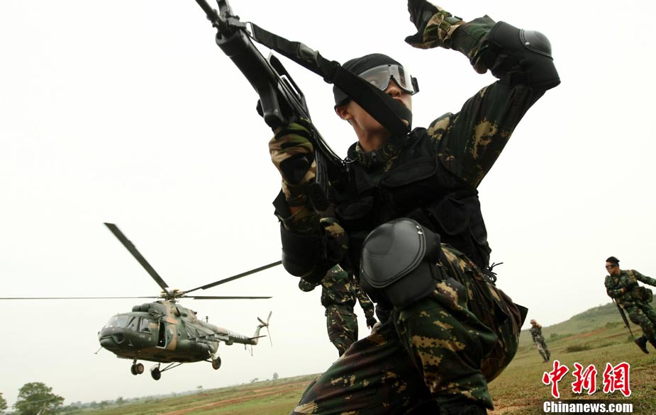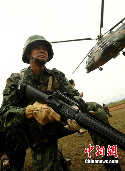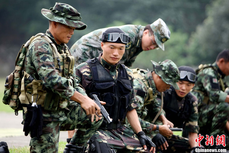 10月9日,中泰陸軍特種部隊反恐聯合訓練進入混編同訓階段,主要圍繞城市反恐基礎技能訓練、混編分隊戰術訓練等科目進行。圖為兩軍士兵進行槍械技能比賽。中新社記者 杜洋 攝