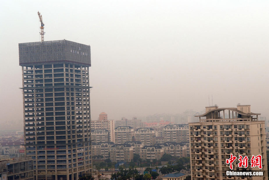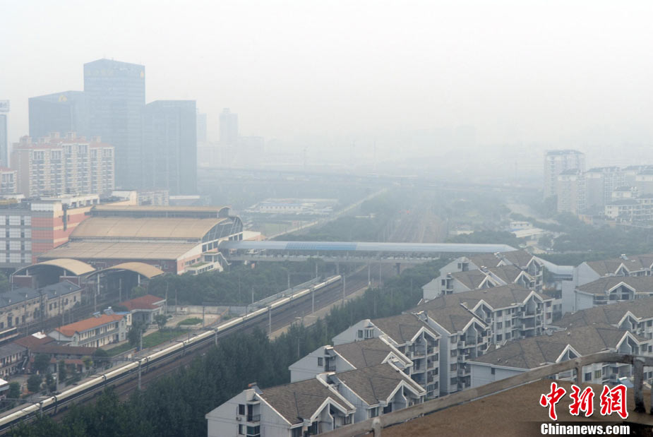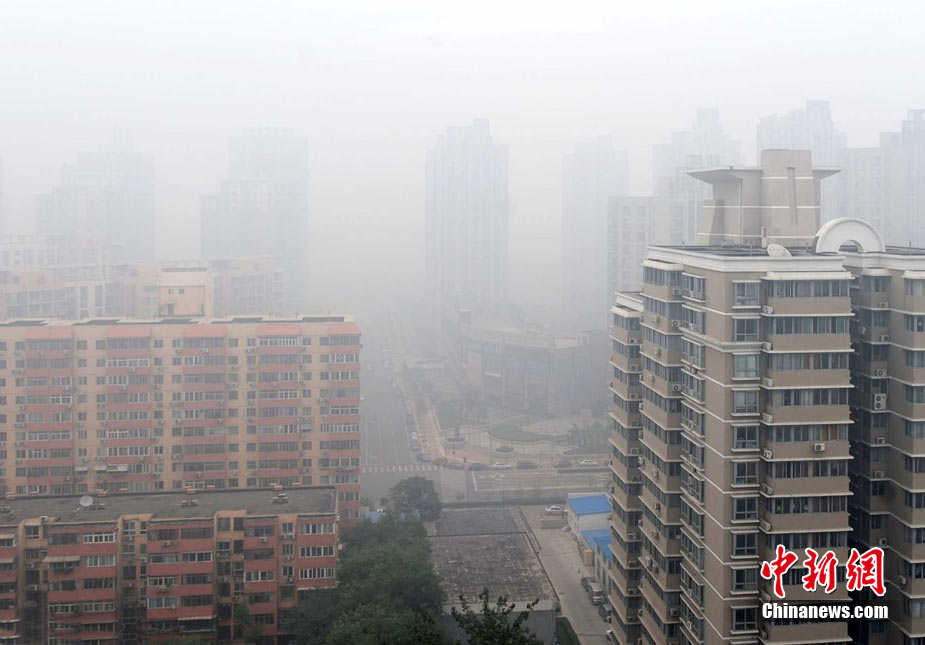 10月10日上午,北京東三環國貿橋被大霧籠罩。當日,持續的大霧再度襲擊北京城,中央氣象臺10月10日06時繼續發布大霧藍色預警。中新社發 馬毅行 攝 圖片來源:CNSPHOTO