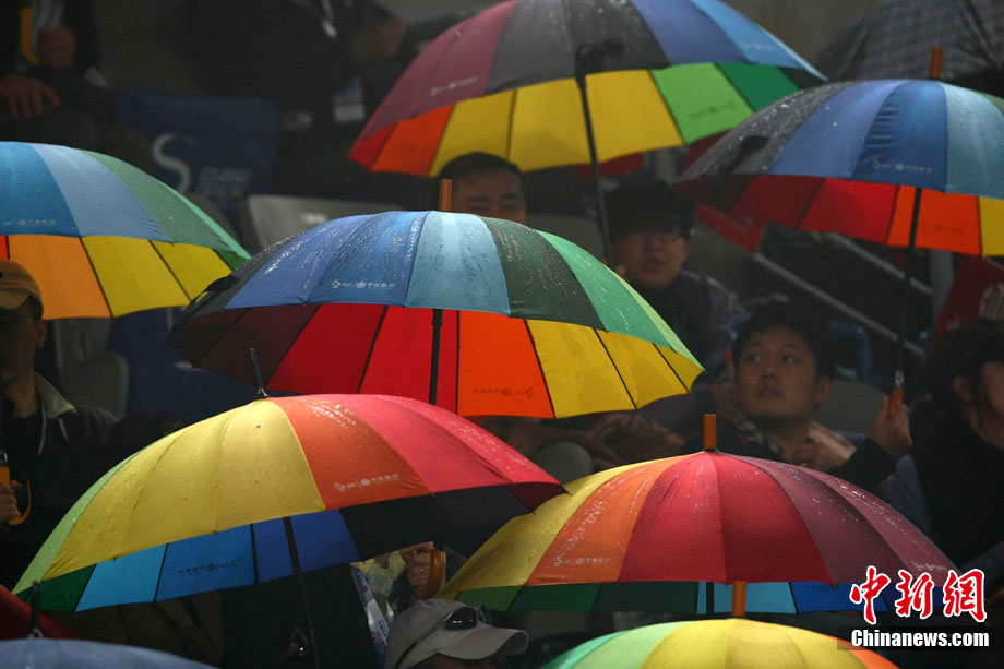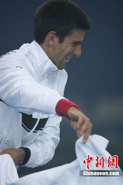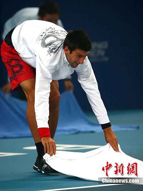 10月10日,總獎金額為210萬美元的ATP'500中網(wǎng)公開賽進入最后一天的爭奪,衛(wèi)冕冠軍德約科維奇與西班牙名將費雷爾之間的男單決賽因雨中斷,比賽暫停時小德以3-1的比分暫時領(lǐng)先。中新社記者 富田 攝