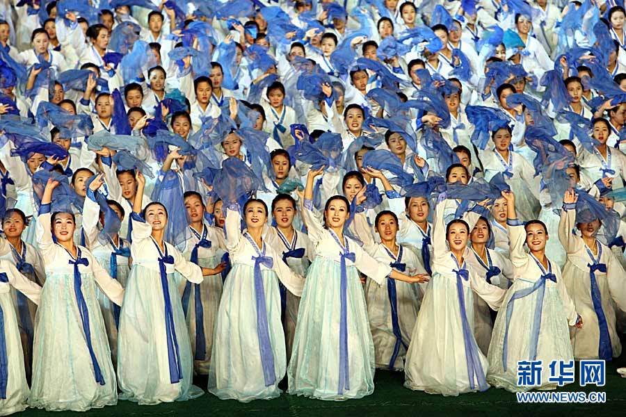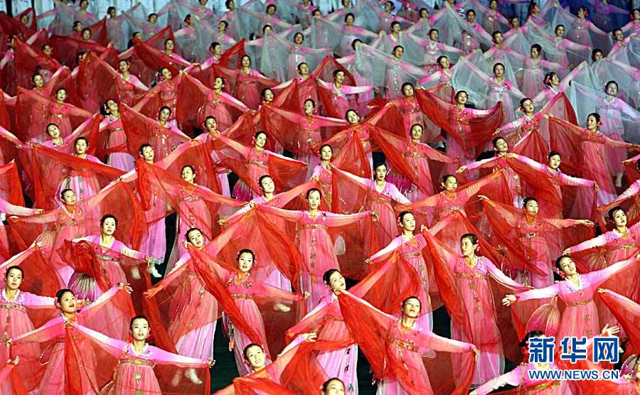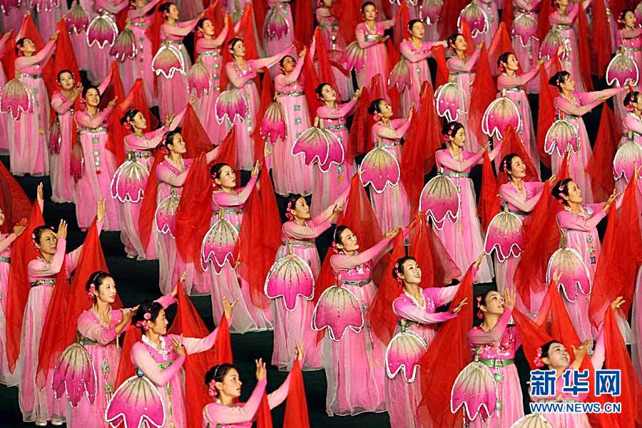 10月10日晚,朝鮮首都平壤舉行慶祝勞動黨建黨65周年盛大聯歡晚會。圖為晚會現場。
