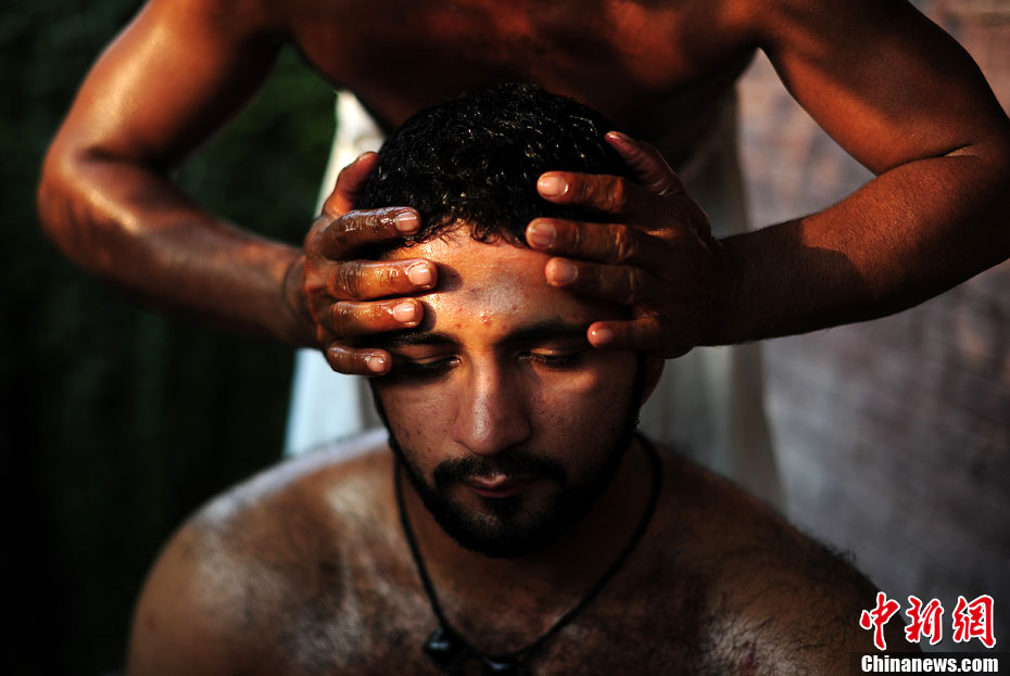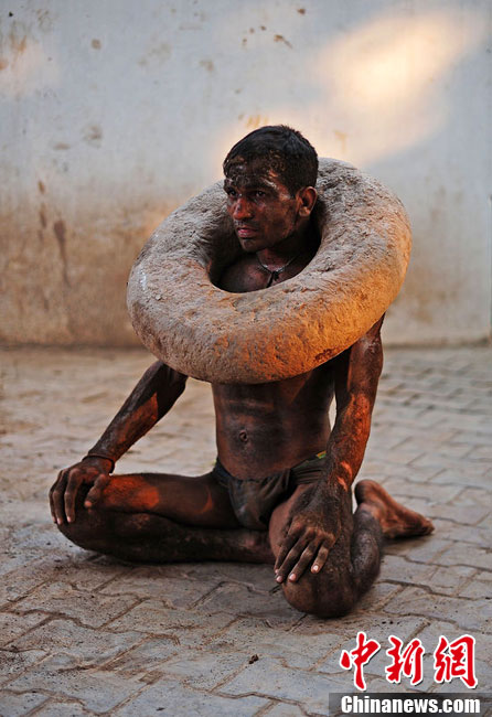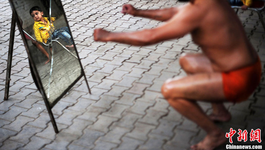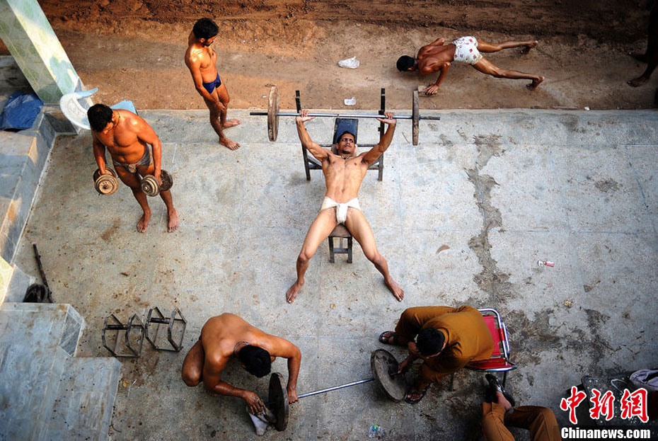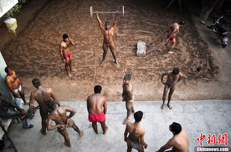 圖為巴基斯坦泥地摔跤手的訓(xùn)練生活。