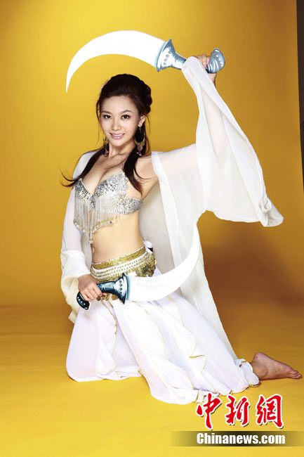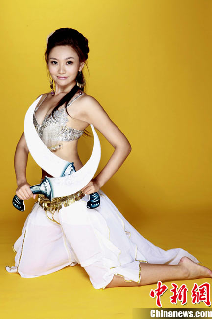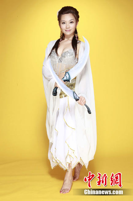 近日,足球寶貝劉聞雯為與動作巨星甄子丹合作代言的一款武俠題材網游拍攝廣告片。劉聞雯低胸性感,盡顯熱辣身材。