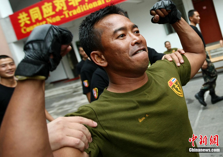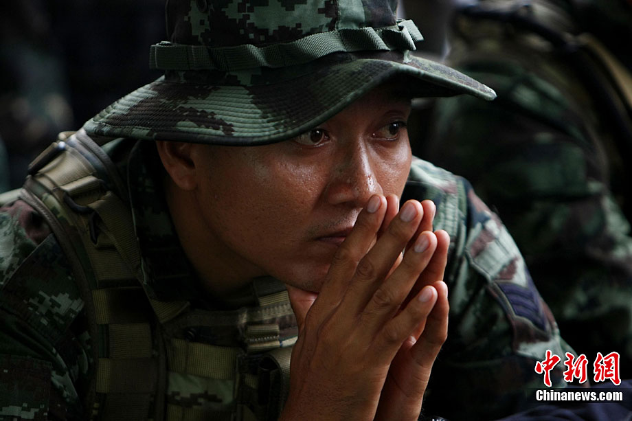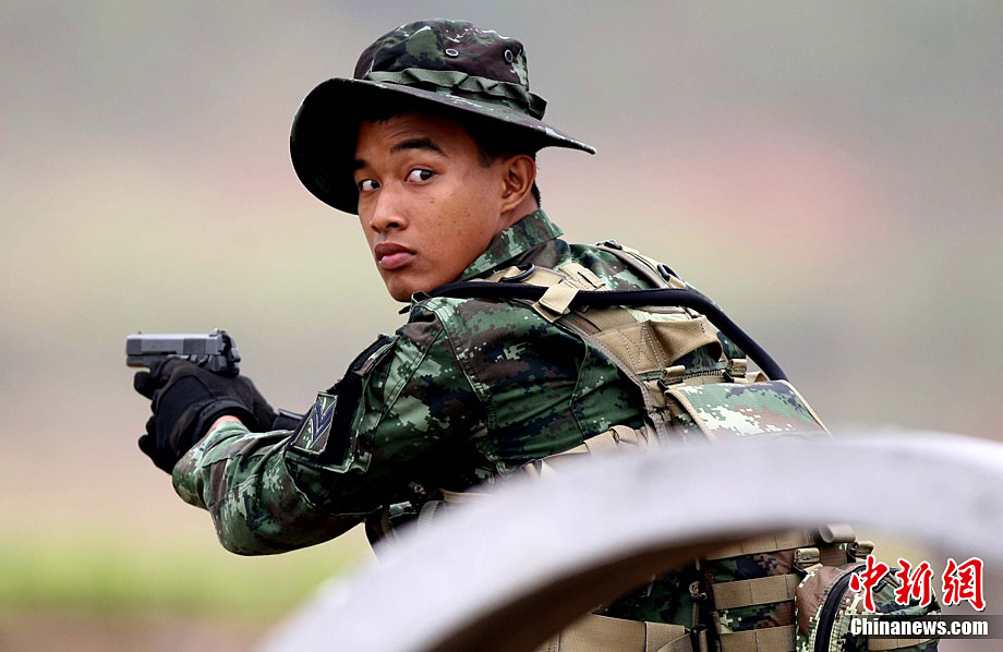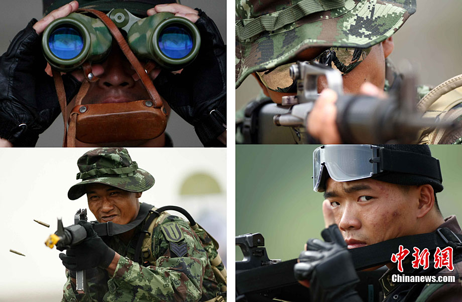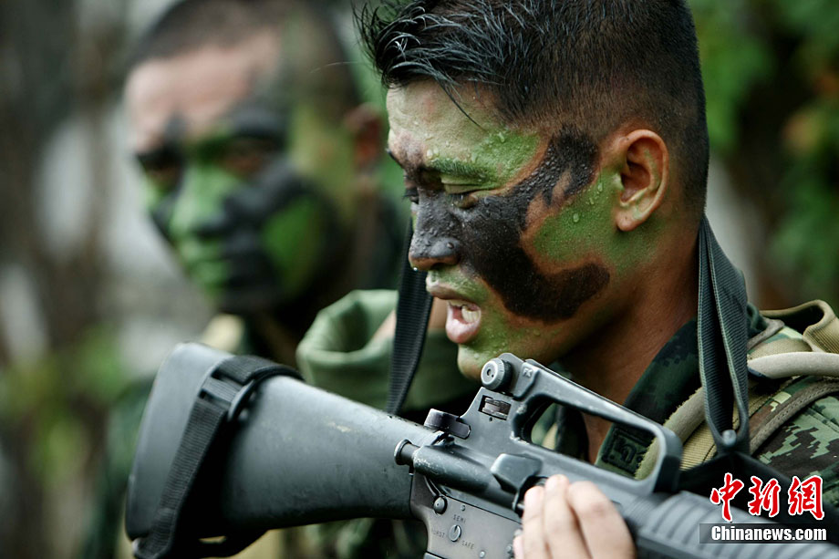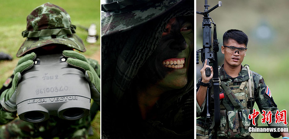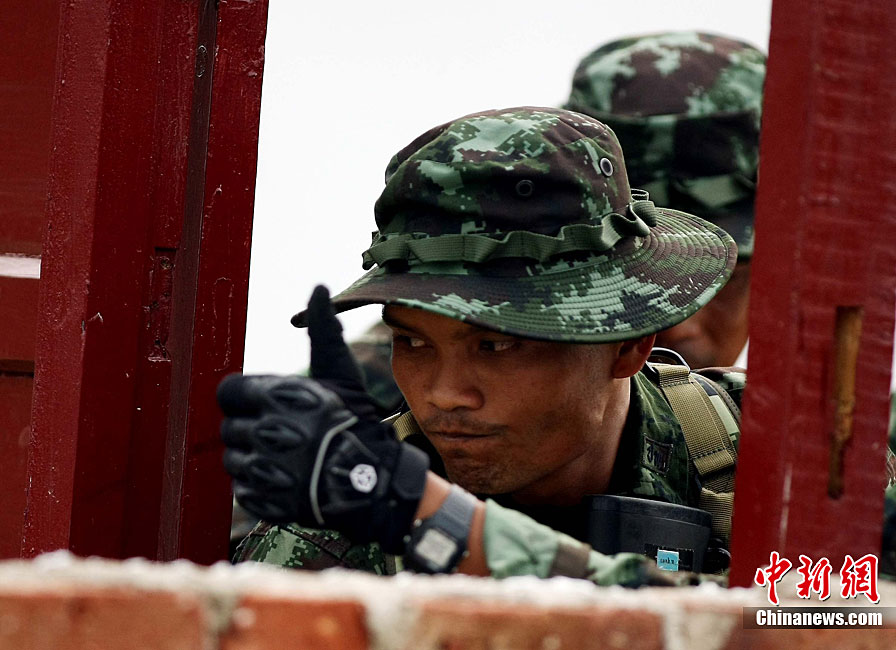 10月6日至20日,代號“突擊—2010”的中泰陸軍特種部隊(duì)聯(lián)合反恐訓(xùn)練在廣西桂林舉行。參加演練的,分別是被譽(yù)為“南國利劍”的廣州軍區(qū)某特種大隊(duì)和被譽(yù)為“叢林猛虎”的泰國陸軍特戰(zhàn)三團(tuán)派出的120名官兵。在兩周時間內(nèi),訓(xùn)練內(nèi)容涵蓋射擊、攀登、反制戰(zhàn)術(shù)等8大項(xiàng)、20多個小項(xiàng)的課目。中新社記者 杜洋 攝