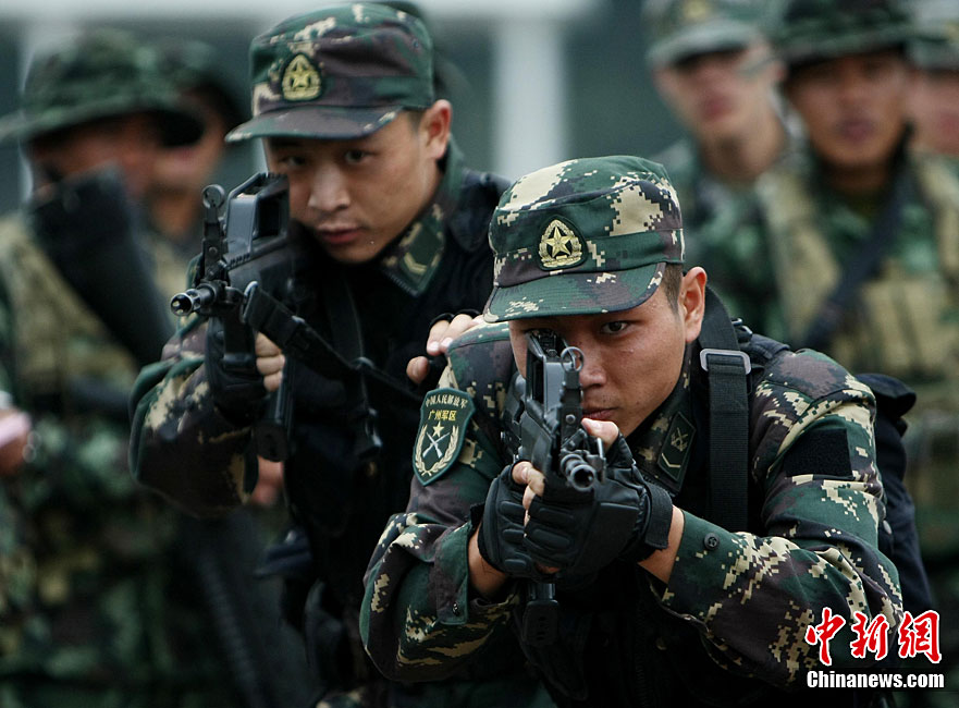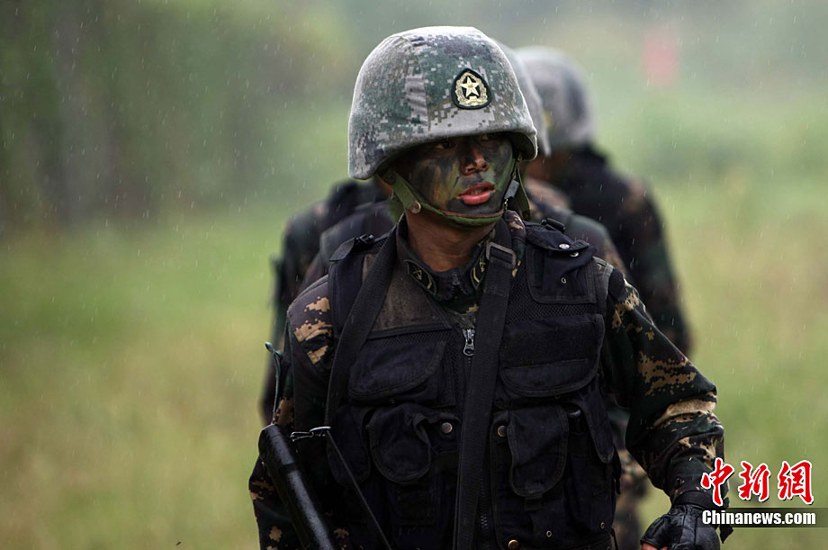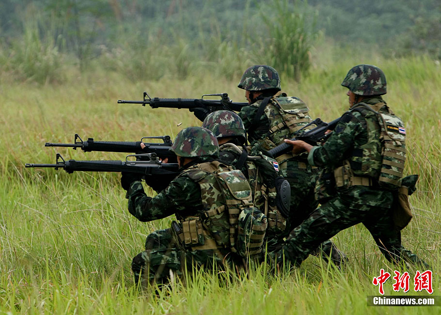 10月6日至20日,代號“突擊—2010”的中泰陸軍特種部隊聯合反恐訓練在廣西桂林舉行。參加演練的,分別是被譽為“南國利劍”的廣州軍區某特種大隊和被譽為“叢林猛虎”的泰國陸軍特戰三團派出的120名官兵。在兩周時間內,訓練內容涵蓋射擊、攀登、反制戰術等8大項、20多個小項的課目。中新社記者 杜洋 攝