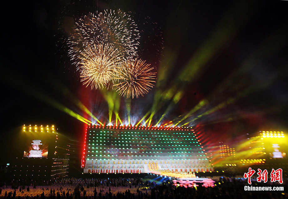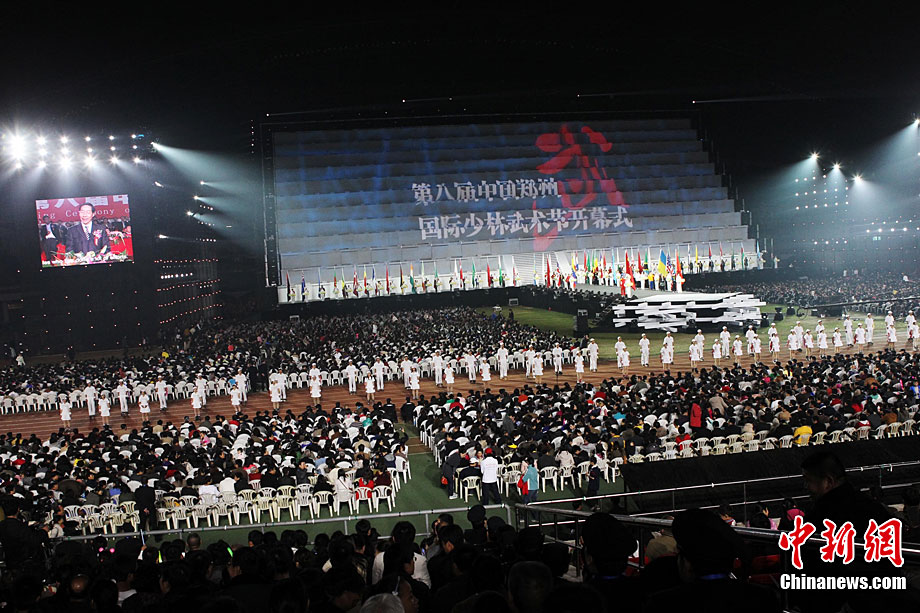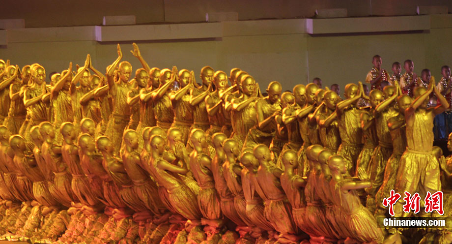 10月22日晚,“金身和尚”在國際少林武術節(jié)開幕式上表演。當日,第八屆中國鄭州國際少林武術節(jié)在鄭州開幕。來自美國、法國、日本、及港澳臺等近60個國家和地區(qū)的1200名選手將在武術節(jié)期間同臺競技。中新社記者 王中舉 攝
