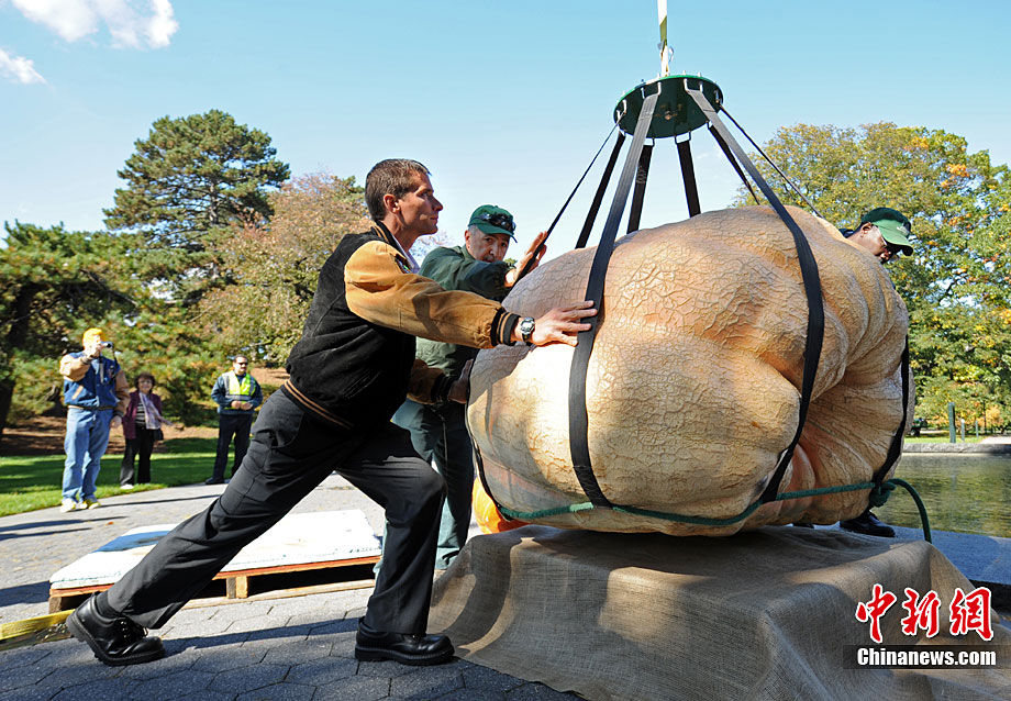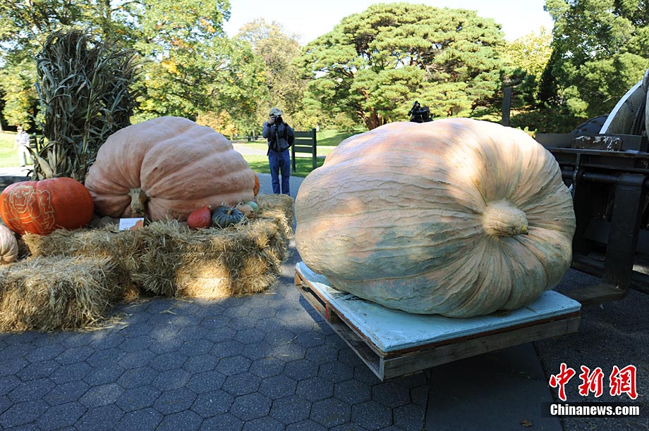 當地時間10月21日,世界上大個頭南瓜在美國紐約植物園里集體亮相展示,其中包括剛打破世界紀錄重達821.2公斤的“新科狀元”。
