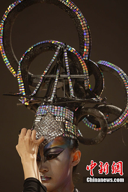 10月25日晚,第六屆“美麗盛典”中國國際時裝周彩妝造型設計大賽在北京798藝術區舉行。本屆“美麗盛典”大賽以“都市”為主題,來自中國和韓國的12位造型師與36位模特合作展示了精彩彩妝造型。中新社記者 盛佳鵬 攝