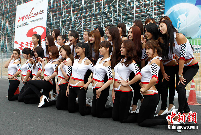 10月24日,F1韓國站比賽在韓國靈巖新建的朝鮮國際賽車場舉行。韓國眾多靚麗車模齊站賽道兩邊歡迎各路車手參賽。據悉,這是朝鮮國際賽車場首次迎接世界頂級賽事。