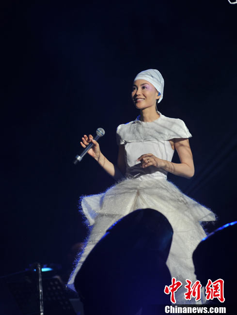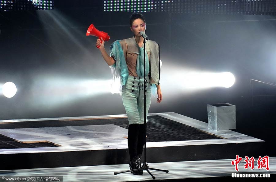 10月29日晚,暌違六年,華語樂壇天后級人物王菲在自己的家鄉——北京,再次開嗓,為歌迷奉獻出一場精彩絕倫的演唱會。整場演出,王菲在造型上十分搶眼,不論最開始的一身雪白,脫去外套后的蓬蓬裙顯得清新脫俗,或是中間段的摩登女郎裝扮、騎士裝、拖地長禮服,都令她展現不同韻味。圖片來源:CFP視覺中國
