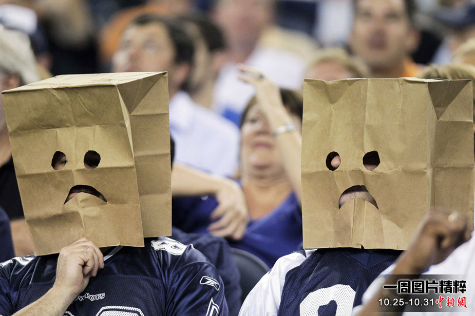 10月25日(周一),美國田納西州阿靈頓舉行的2010-11賽季NFL常規賽的最后一場比賽中,達拉斯牛仔隊以35-41的比分輸給紐約巨人隊。圖為觀看比賽的達拉斯牛仔隊球迷。