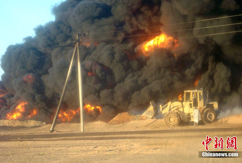 當地時間11月2日,在也門南部省份舍卜沃,輸油管道被炸后燃燒升起濃煙。也門安全官員當日說,“基地”組織武裝人員當天炸毀了也門南部舍卜瓦省一條主要輸油管道,但未導致人員傷亡。
