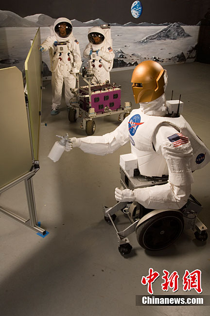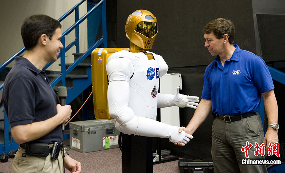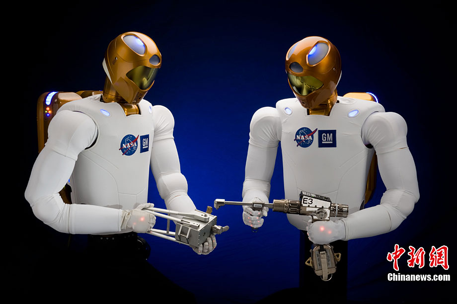 全球首個太空機器人(左)定于11月3日跟隨美國“發(fā)現(xiàn)”號航天飛機前往國際空間站,在那里度過自己的“一生”,它將在國際空間站完成一系列測試工作。據(jù)機器人設計者表示,它將在國際空間站完成一系列測試工作,但它的“后代”或許可以承擔太空行走、外星探險等更加復雜、危險的任務。