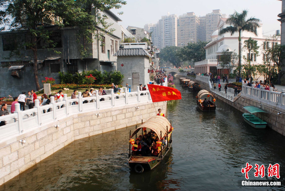 經過大半年的揭蓋復涌,整飾一新的廣州荔枝灣涌,如今重現嶺南水鄉美景的風貌。11月4日,“看亞運,游西關”荔灣精典一日游活動在荔枝灣舉行了啟動儀式,迎來了數千名游客和市民。中新社記者 梁永強 攝