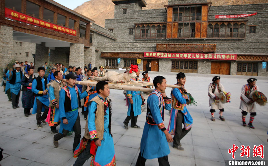 11月6日,四川汶川數(shù)千民眾穿著盛裝跳起羊皮鼓舞,歡度災后重建基本完成后的第一個羌歷新年。羌歷年是羌族最重要的傳統(tǒng)節(jié)日,時間是每年的農(nóng)歷十月初一,羌族人通常用祭祀、唱酒歌、跳鍋莊舞等活動慶祝這一節(jié)日。