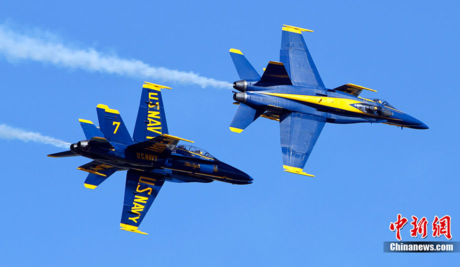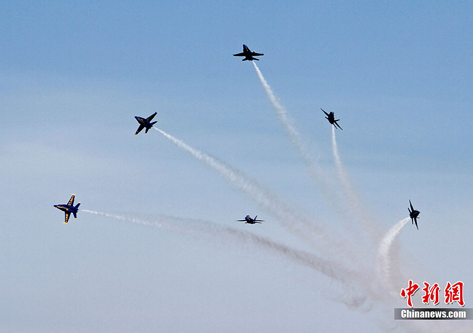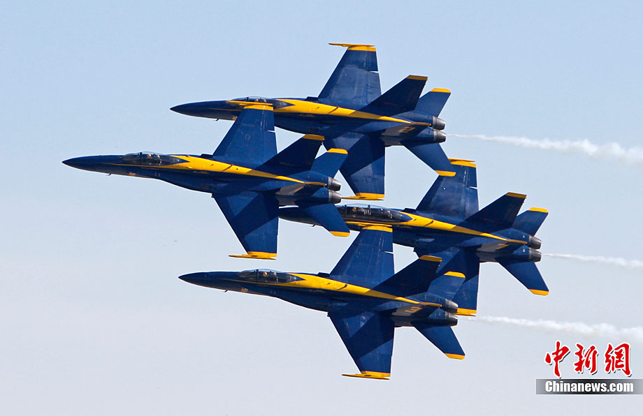 當地時間11月5日,美國邁阿密近郊的霍姆斯帝德空軍儲備基地為當地居民和游客上演了精彩絕倫航空飛行表演。世界上最優秀的特技飛行表演隊之一,同時也是目前世界上唯一一支屬于海軍航空兵的飛行表演隊--美國海軍“藍天使”飛行表演隊駕駛f/a-18“大黃蜂”戰斗機,翱翔藍天,上演令人驚嘆,眼花繚亂的空中特技。