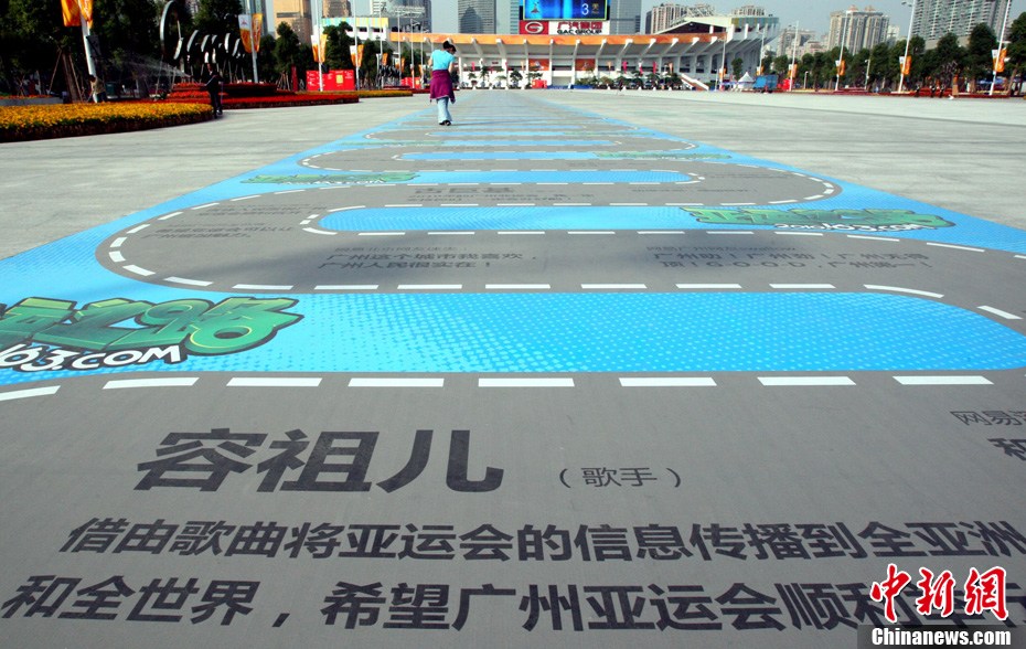 11月9日,隨著第16屆亞運會的臨近,廣州街頭亞運氛圍漸濃。亞運元素成為廣州街頭一道美麗風景。中新社記者 湯彥俊 攝