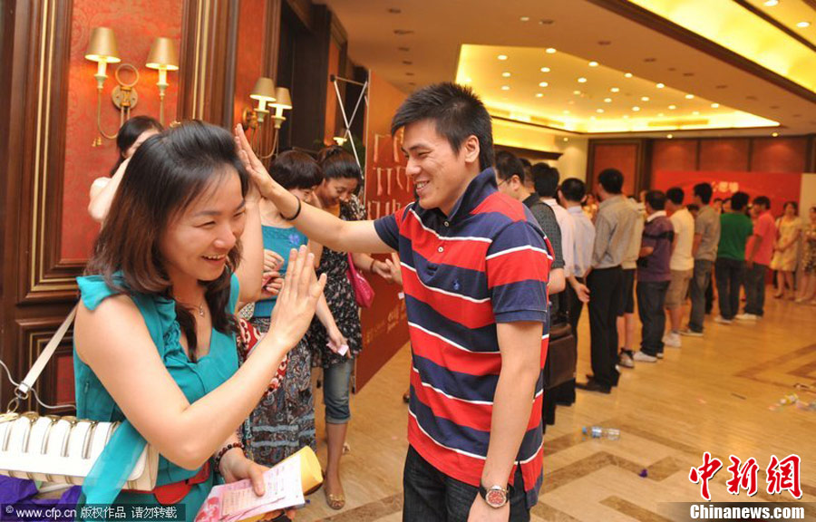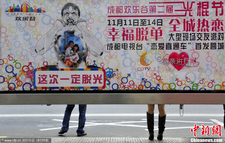 2010年11月11日,又是一個光棍節,許多剩男剩女們為了“脫光”而蠢蠢欲動,單身一族里也有不少人搖旗吶喊要“脫光”,征婚、相親、交友、街頭尋人……這些年年上演的“脫光行動”形形色色,愿每個人找到自己的真愛。圖為2010年10月1日,“愛的就是你”相親大會在廣西南寧青秀山風景區舉辦,該活動吸引了來自全區近萬名單身男女參加。何云攝 圖片來源:CFP視覺中國