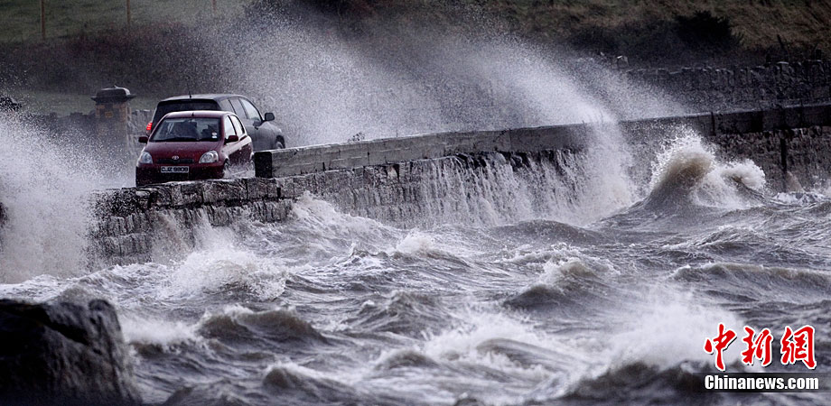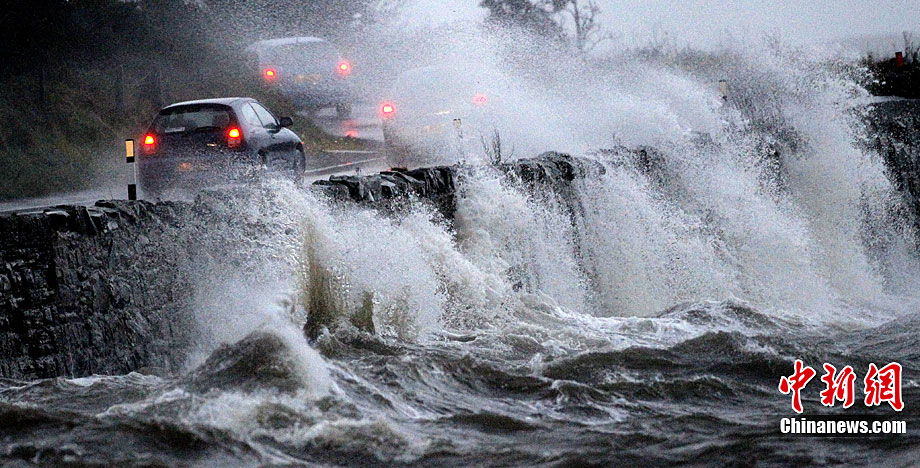 當?shù)貢r間11月11日,英國和荷蘭沿海地區(qū)遭遇狂風(fēng)暴雨天氣的襲擊。圖為北愛爾蘭沿海地區(qū)遭遇狂風(fēng)暴雨襲擊。