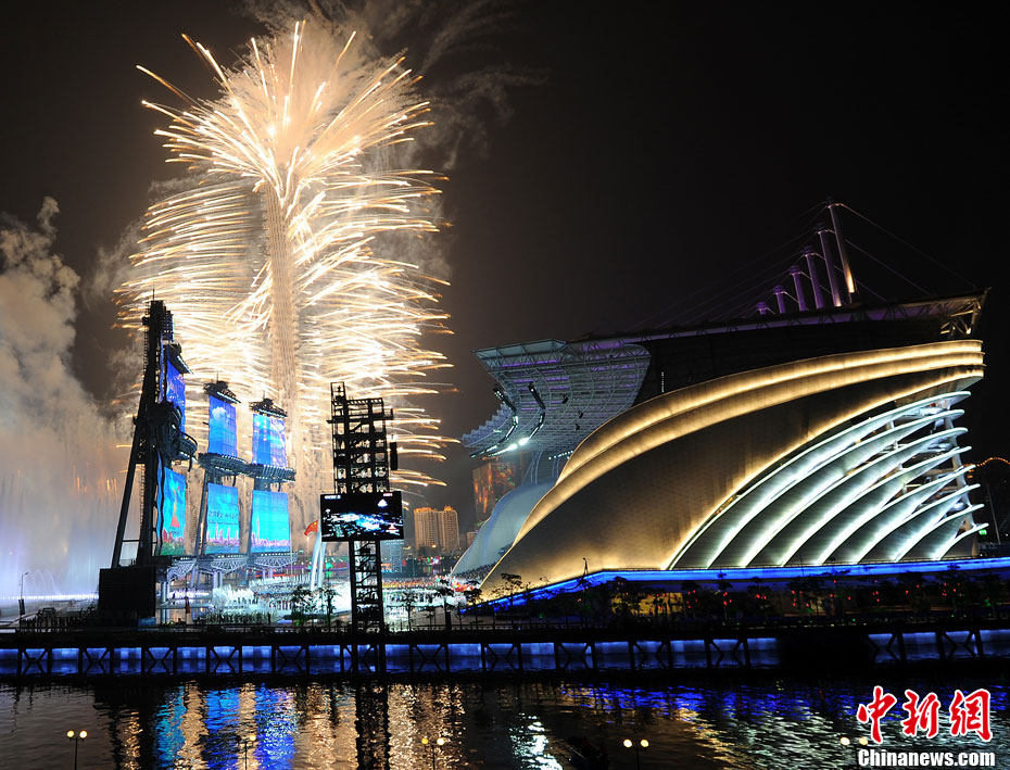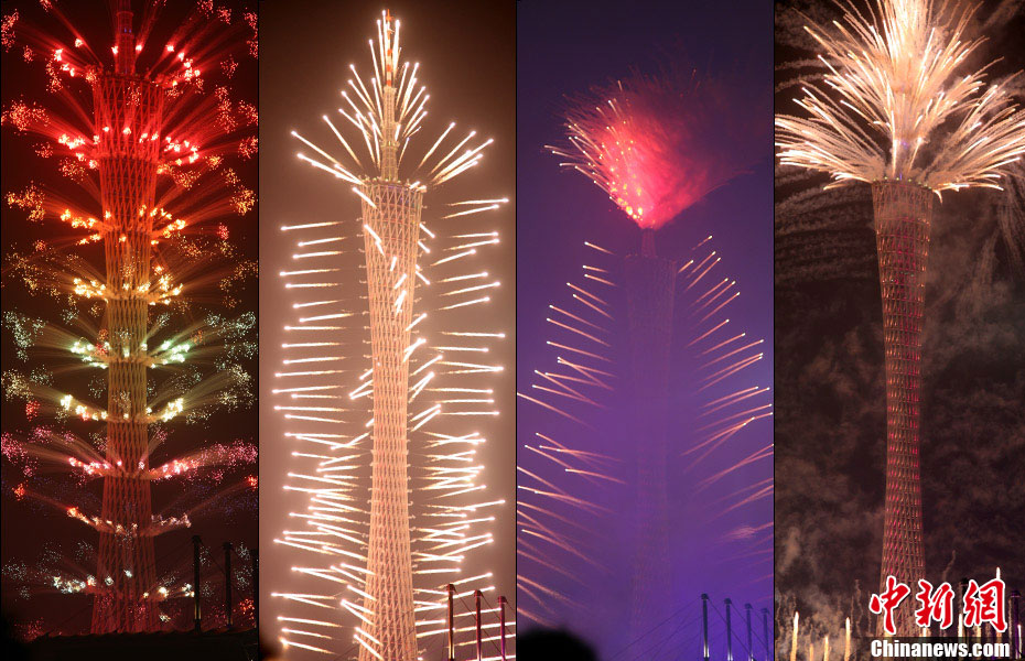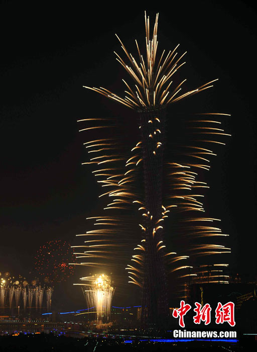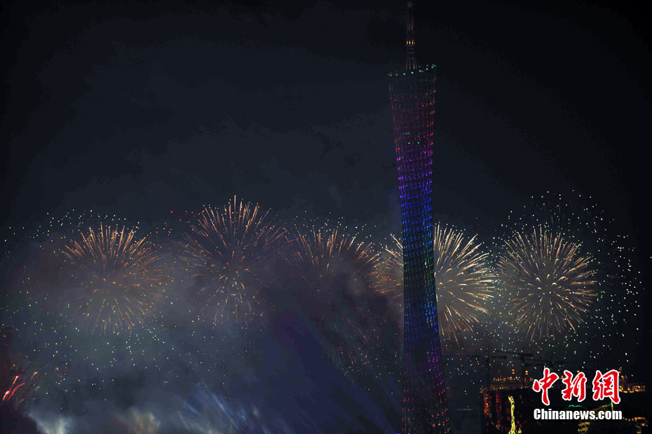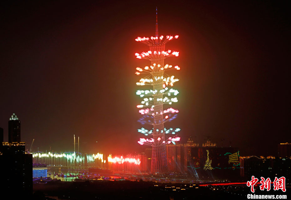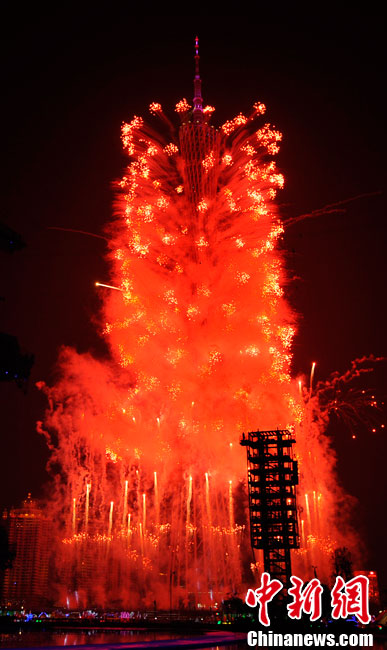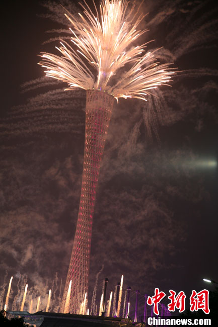 11月12日晚,第十六屆亞洲運動會在廣州開幕,16萬發煙花組成的美麗畫卷點亮了美麗珠江的夜空。