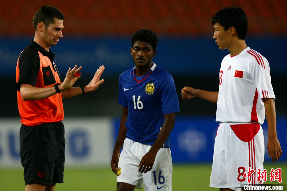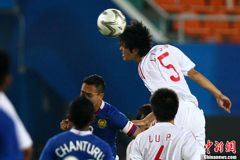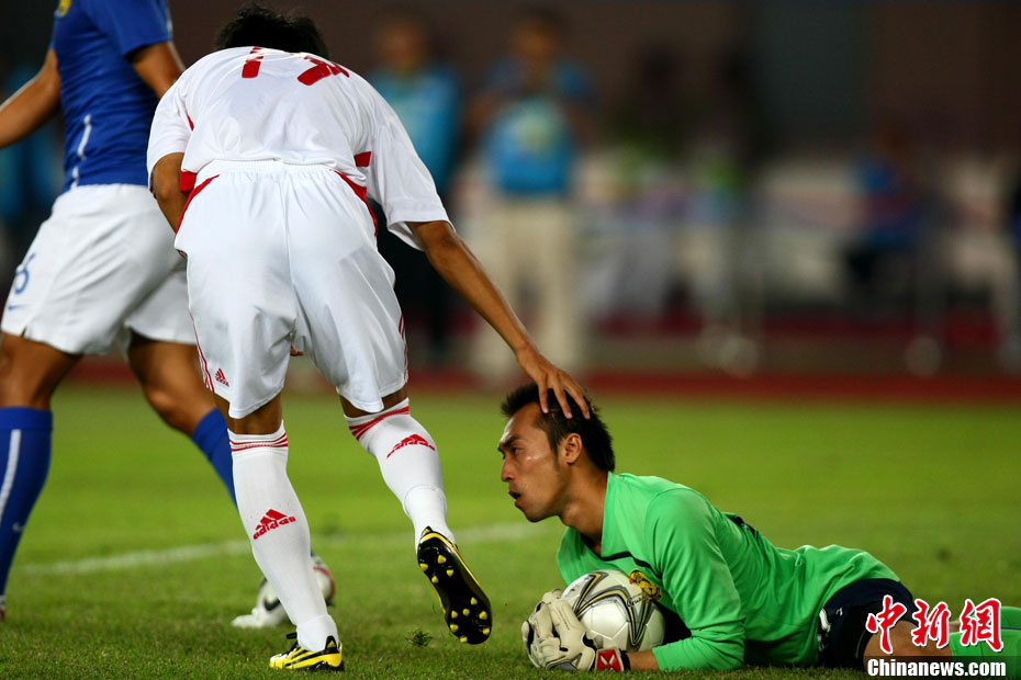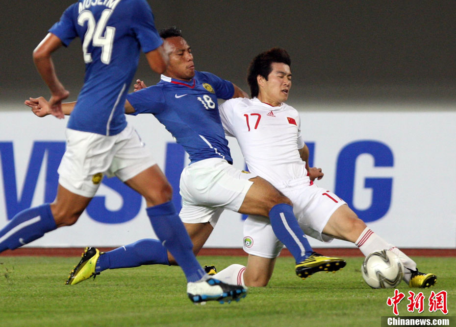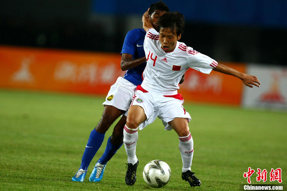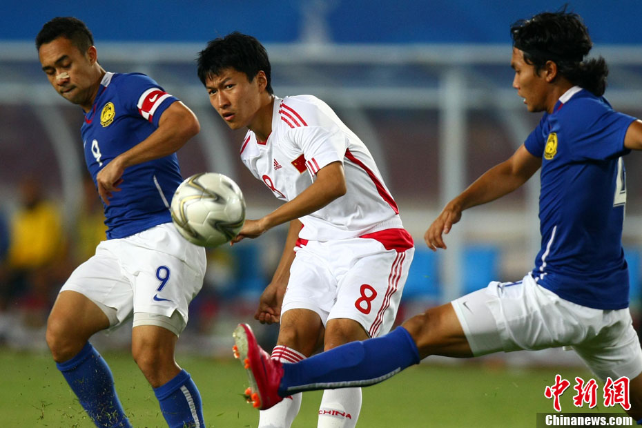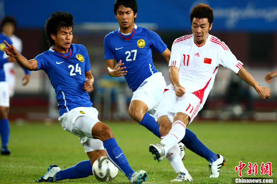 11月13日,在廣州天河體育場進行的亞運會男子足球小組賽A組第31場中國隊對陣馬來西亞的生死之戰(zhàn),中國隊以3比0戰(zhàn)勝馬來西亞隊小組出線。中新社記者 富田 攝
