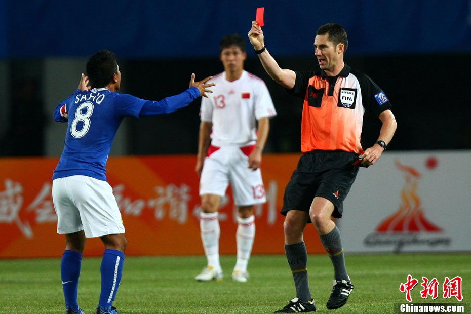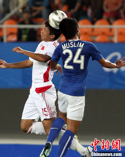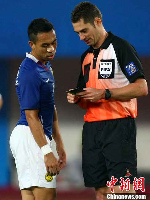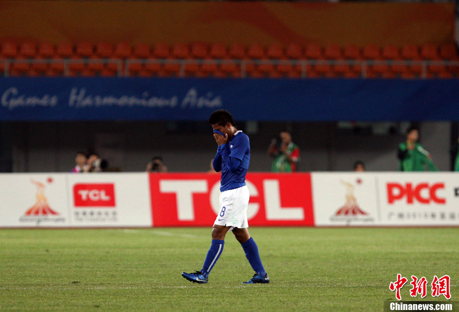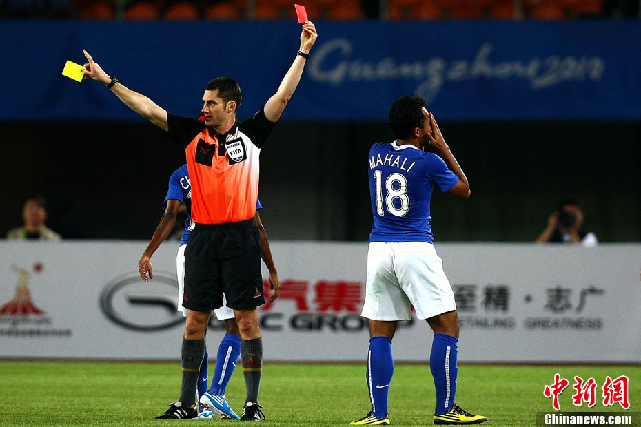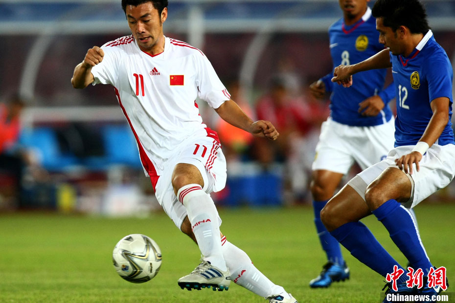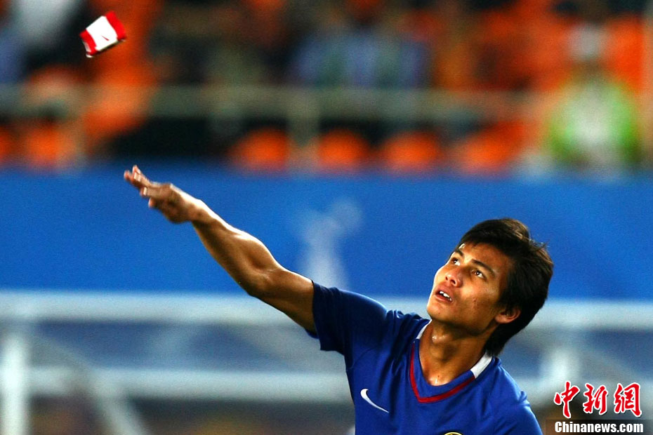 11月13日,在廣州天河體育場進行的亞運會男子足球小組賽A組第31場中國隊對陣馬來西亞的生死之戰(zhàn),中國隊以3比0戰(zhàn)勝馬來西亞隊小組出線。中新社記者 富田 攝