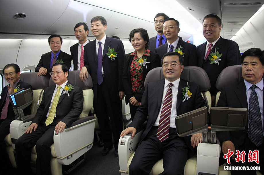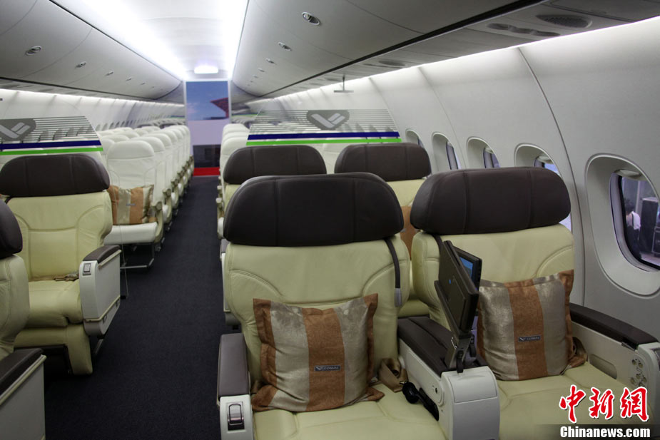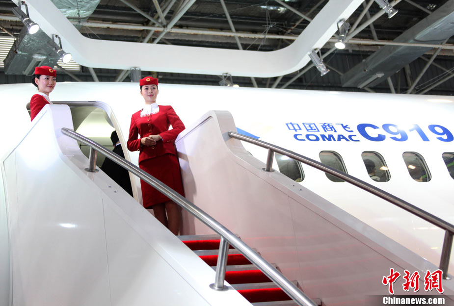 11月15日下午,中國C919大型客機展示樣機在珠海航展揭幕,這是中國C919大型客機1:1展示樣機首次亮相。中國C919大型客機是中國擁有自主知識產(chǎn)權(quán)的中短程商用干線飛機,其基本型全經(jīng)濟級布局為168座,混合級布局為156座,其標準航程型設(shè)計航程為4075公里,增大航程型設(shè)計航程為5555公里。按計劃,C919大型客機2010年完成初步設(shè)計,2012年完成詳細設(shè)計,2014年實現(xiàn)首飛,2016年完成適航取證并投放市場。中新社記者 孫自法 攝