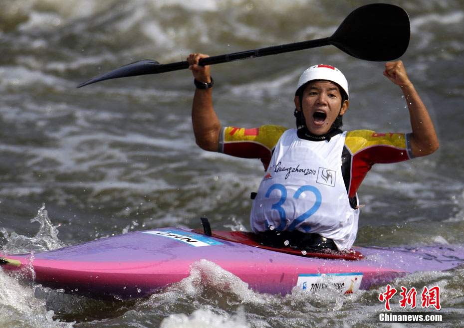 11月16日上午,中國選手鄒映影在廣州亞運會皮劃艇激流回旋女子單人皮艇決賽中獲得冠軍。 中新社記者 任晨鳴 攝
