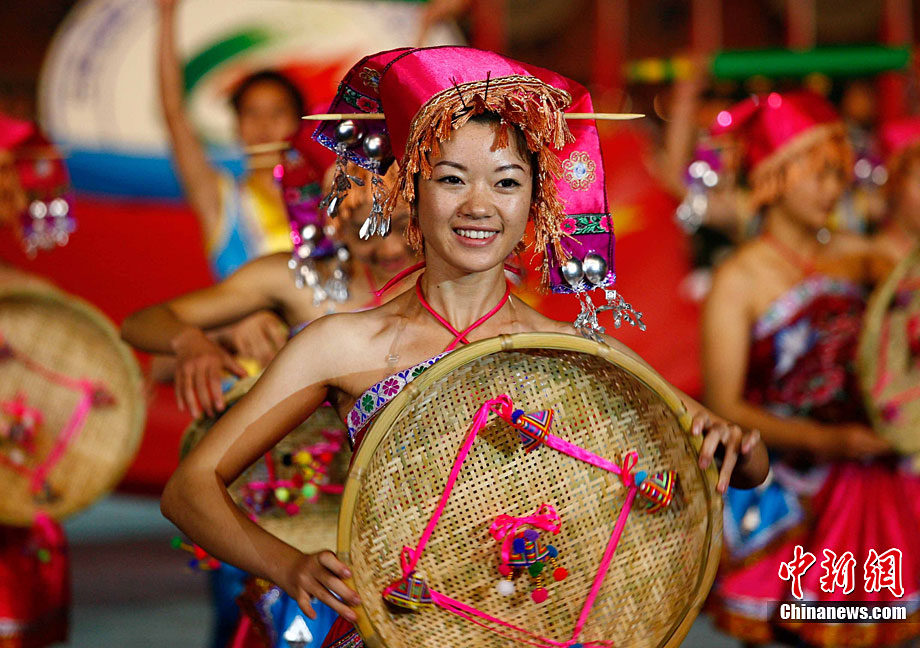 11月16日晚,云南省第九屆少數民族傳統運動會在云南省普洱市開幕。云南是一個多民族的邊疆省份,來源于生活的民族傳統體育歷史悠久,特色鮮明,深受各族人民的喜愛。圖為佤族舞者精彩的表演吸引觀眾的目光。中新社記者 劉冉陽 攝