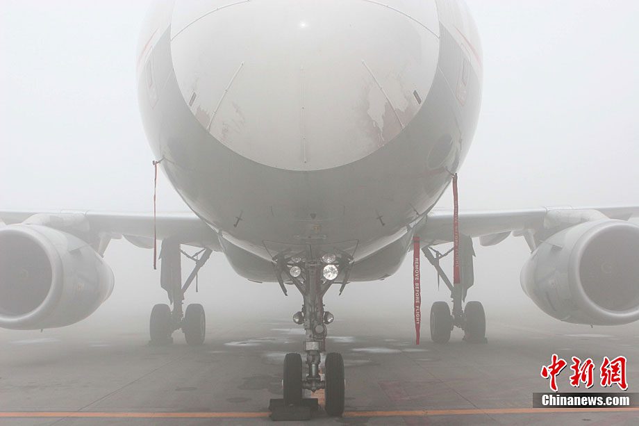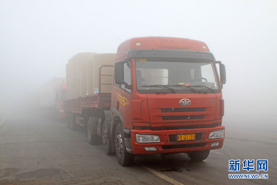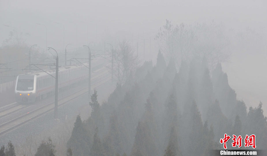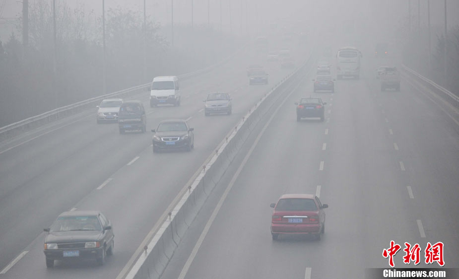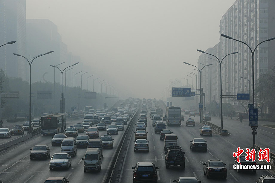 11月19日上午,北京被霧霾天籠罩,能見度較低,西二環路上的汽車緩慢前行。中新社記者 侯宇 攝