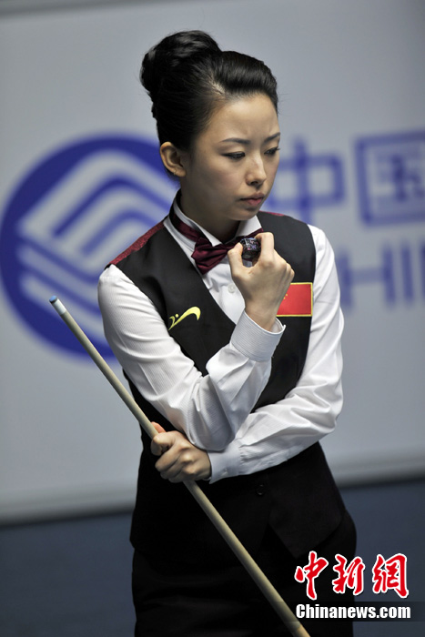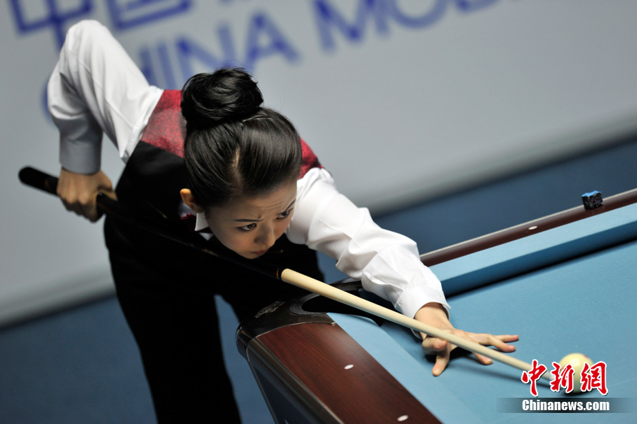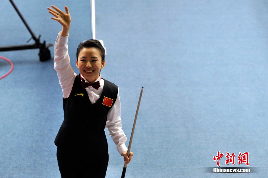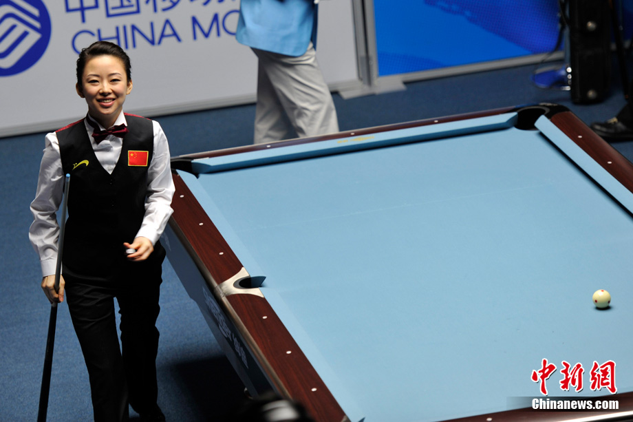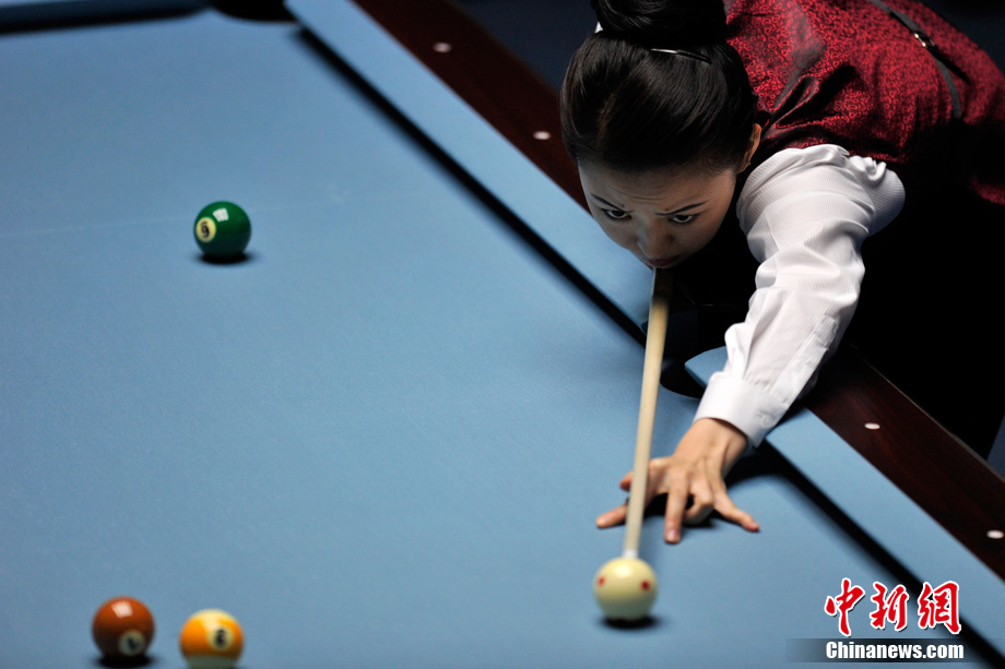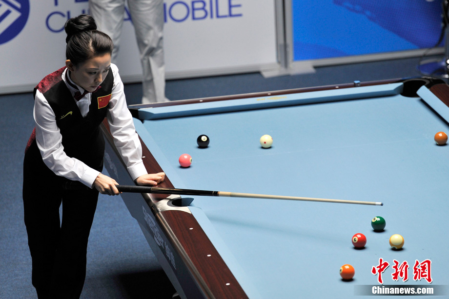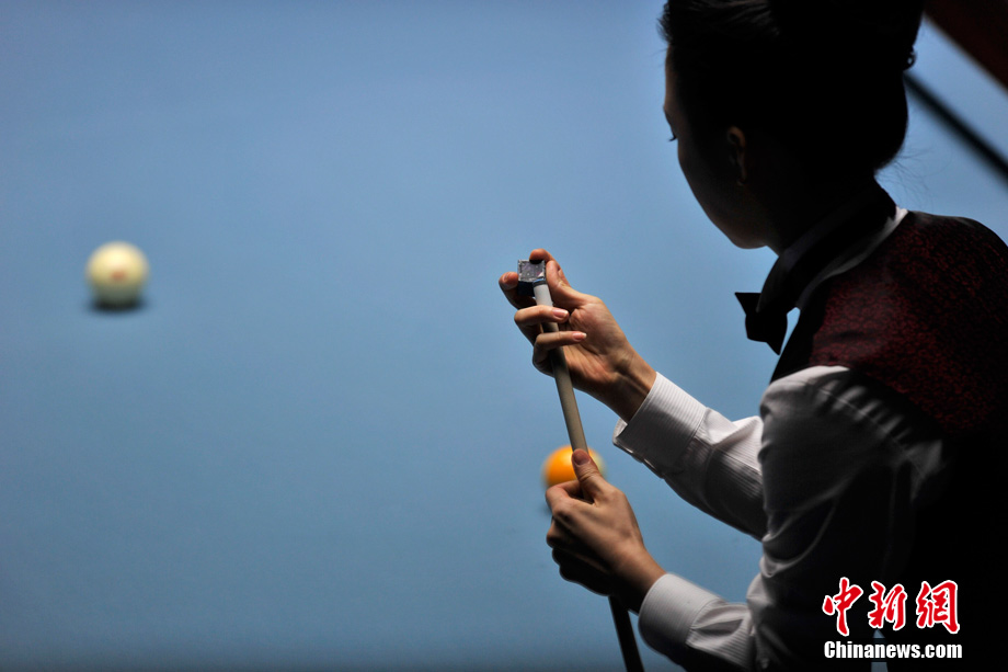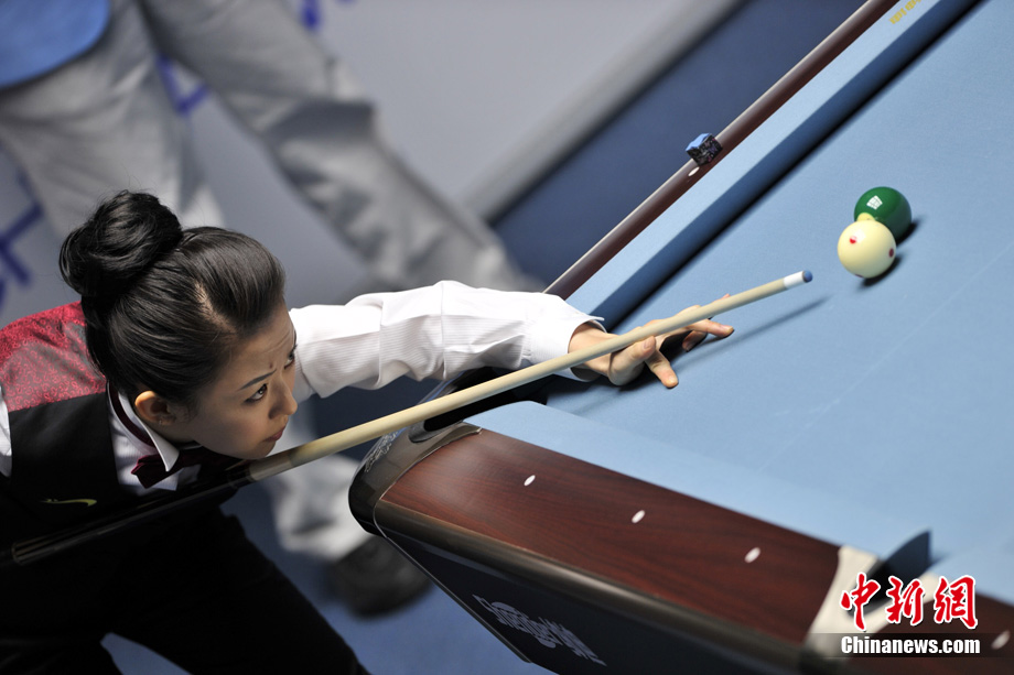 11月19日下午,廣州亞運(yùn)會女子美式9球單打決賽在亞運(yùn)城體育館上演,經(jīng)過2個多小時的激烈角逐,中國選手潘曉婷以7:5力克中華臺北選手周婕妤,最終奪冠。中新網(wǎng)記者 金碩 攝