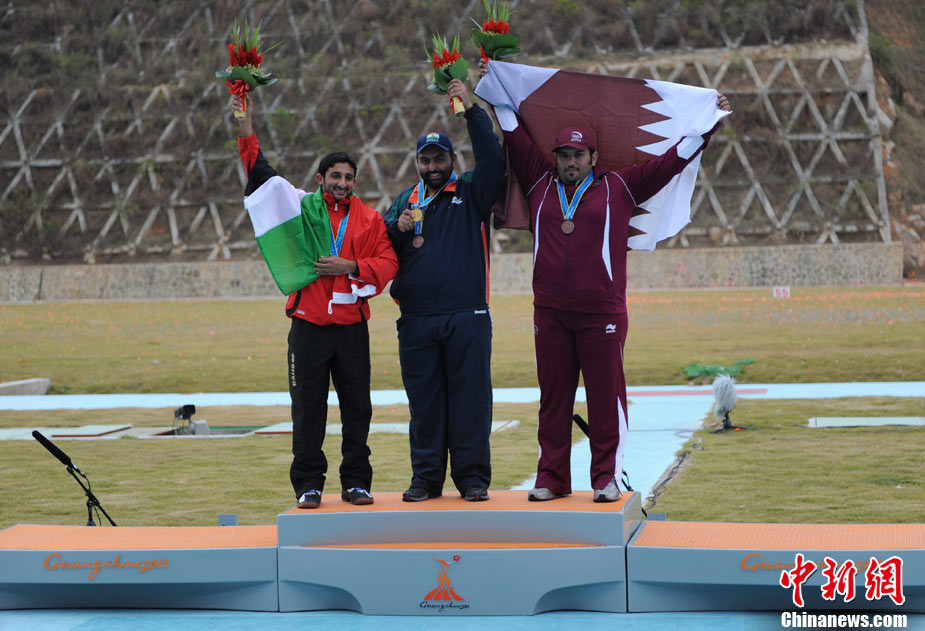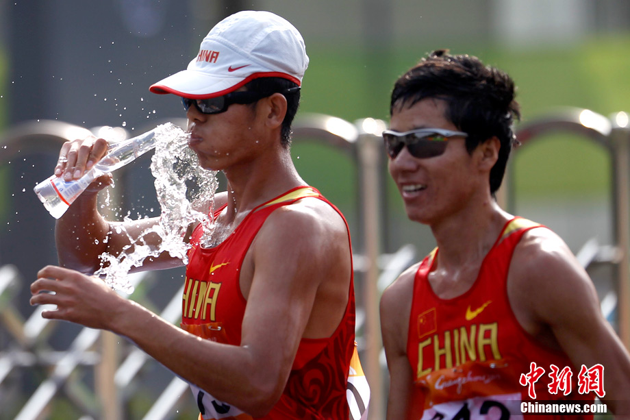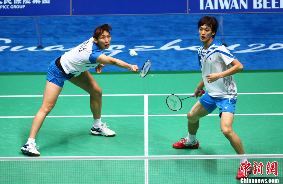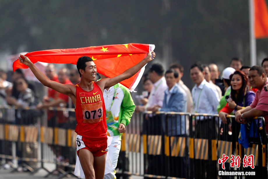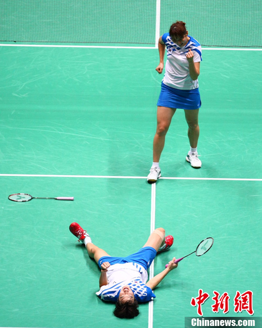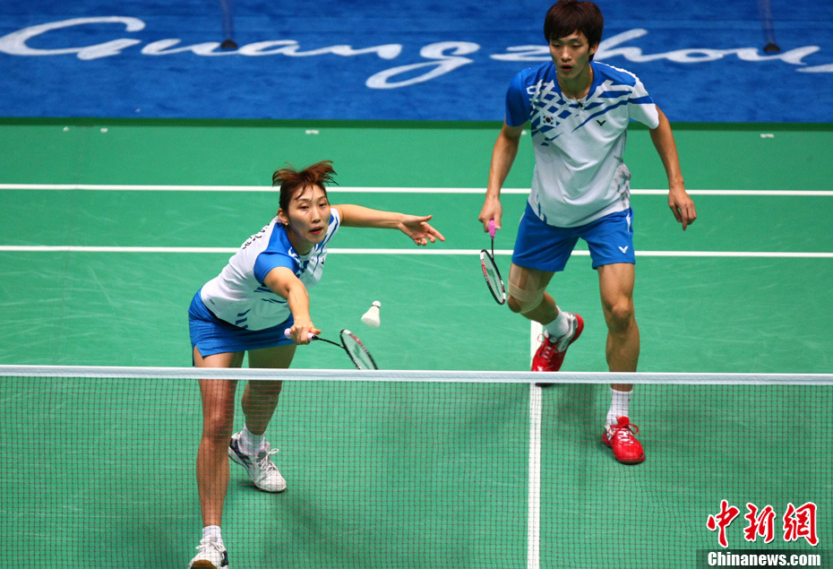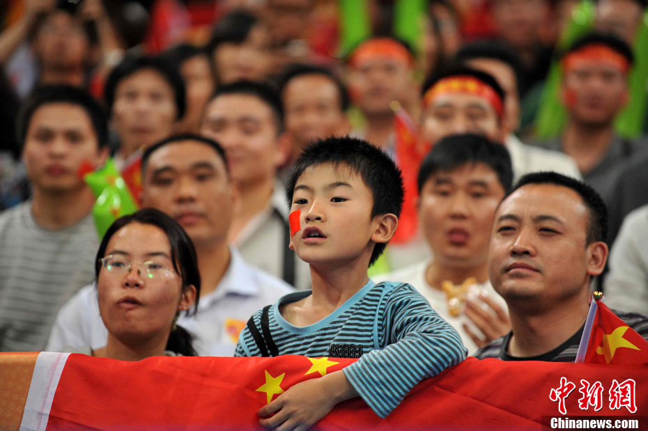 11月21日晚,2010年廣州亞運會天河體育館羽毛球賽場舉行男子單打決賽,中國隊的林丹對陣馬來西亞的李宗偉。最終,林丹2-1戰勝李宗偉奪冠。中新社記者 富田 攝