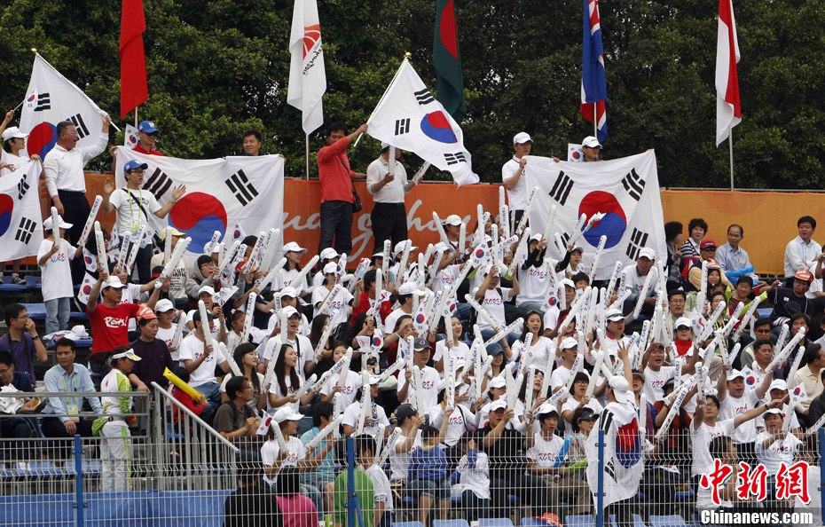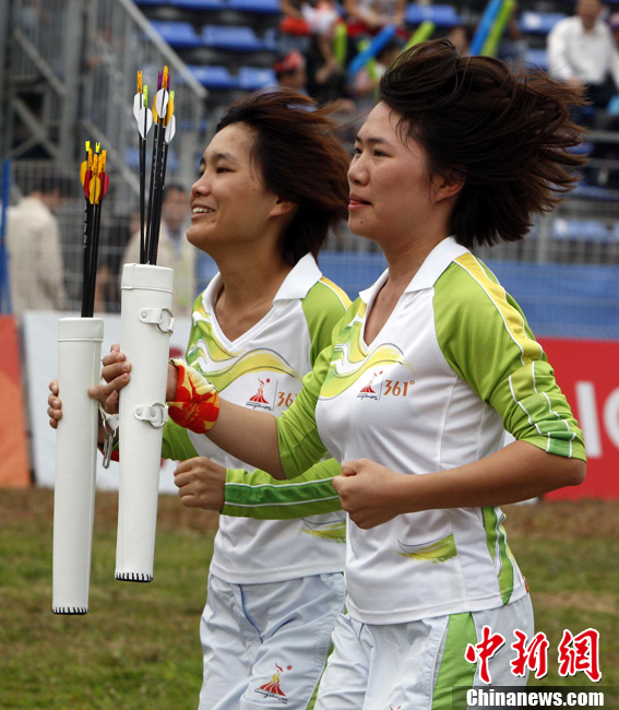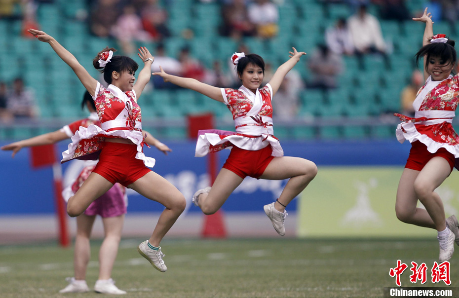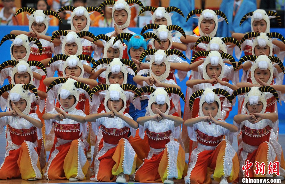 21日晚,一群武術小羊亮相廣州國際體育演藝中心,為在此舉行的亞運會男籃比賽中韓之戰暖場。中新社記者 柯小軍 攝