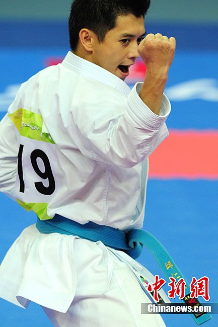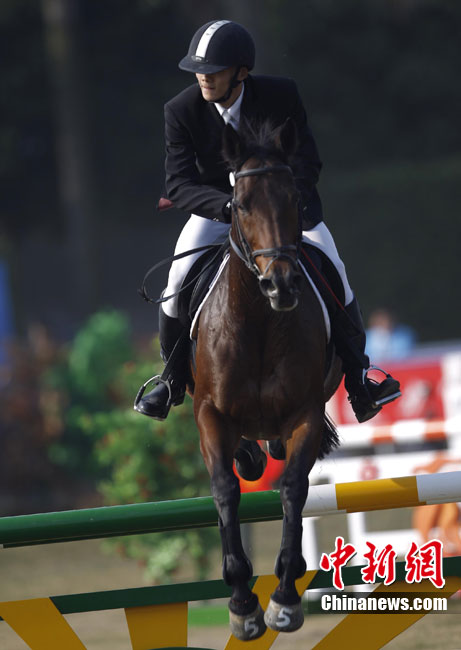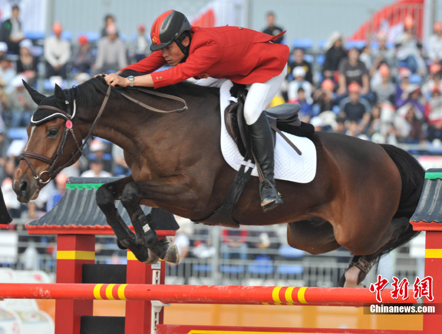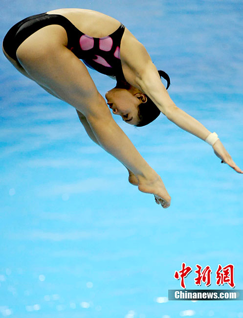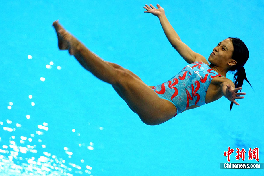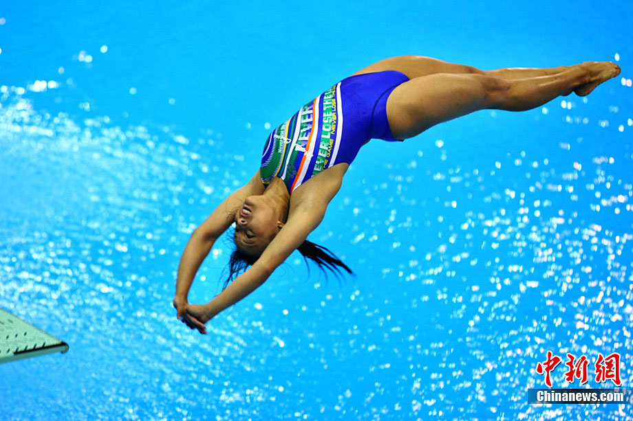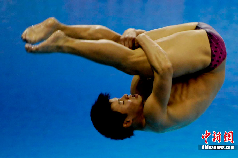 11月24日,廣州亞運會跳水項目男子1米跳板決賽在奧體游泳館舉行,中國選手何敏以481.20分奪得金牌。中新社記者 王東明 攝