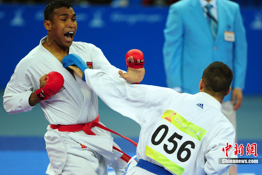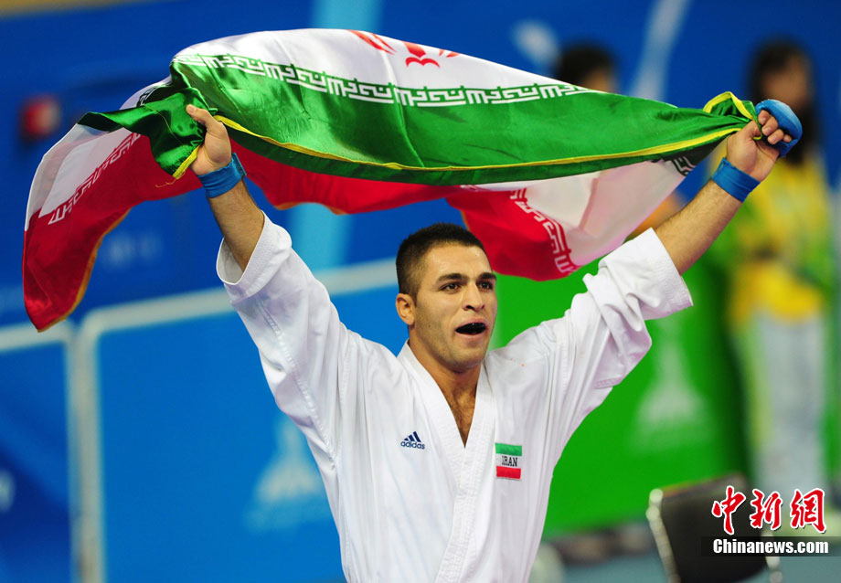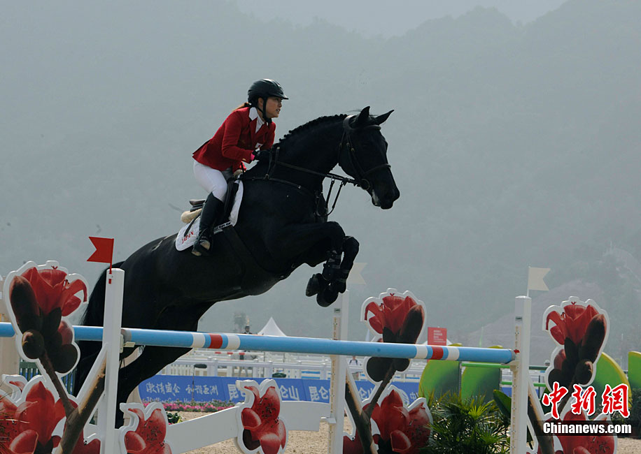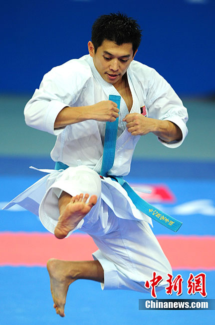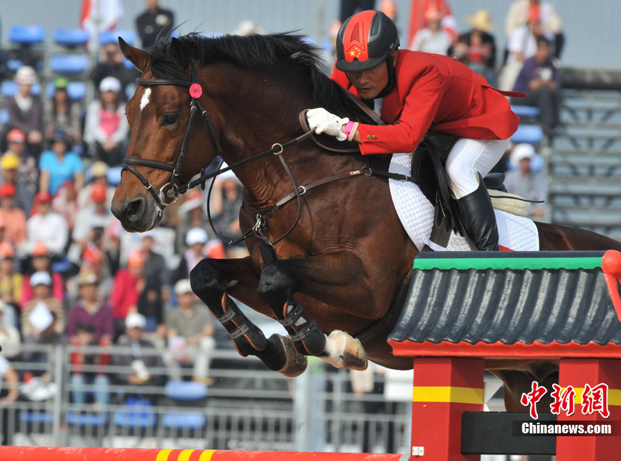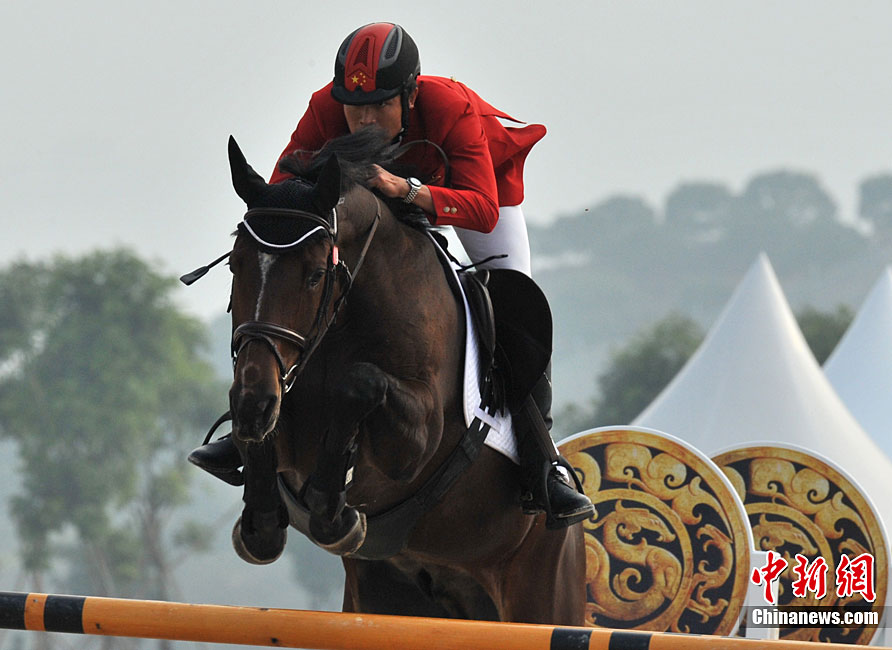 11月24日,廣州亞運會跳水項目男子1米跳板決賽在奧體游泳館舉行,中國選手何敏以481.20分奪得金牌。中新社記者 王東明 攝