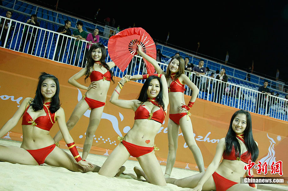 11月24日,廣州亞運(yùn)會(huì)男子沙灘排球奪冠戰(zhàn)落下戰(zhàn)幕,沙灘寶貝們的難忘營地和精彩表演也就此謝幕。中新社記者 張茵 攝