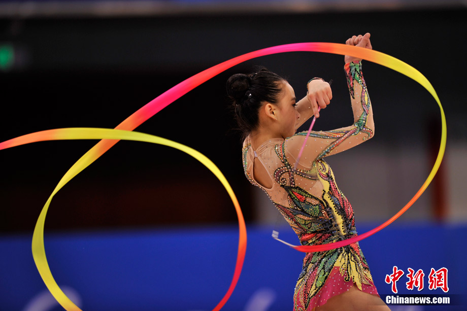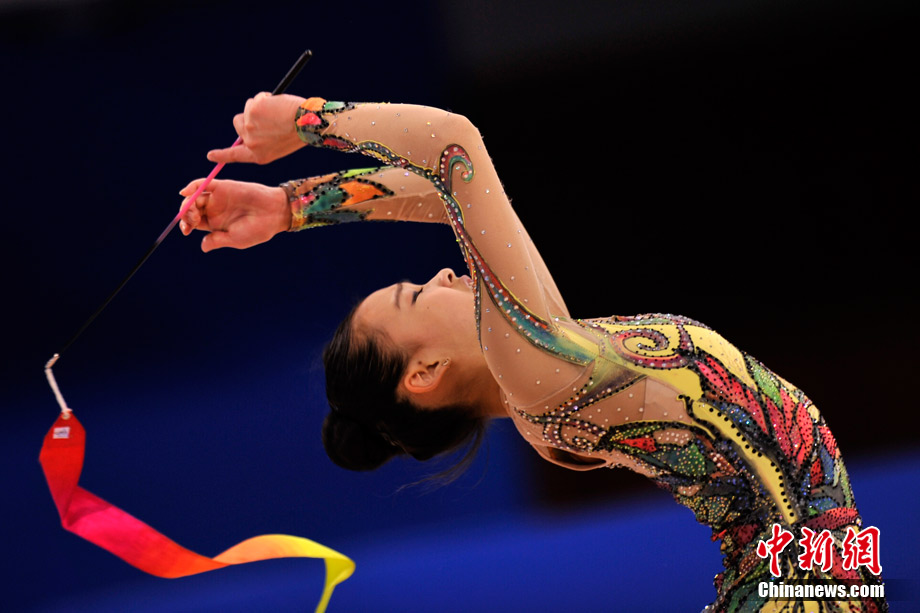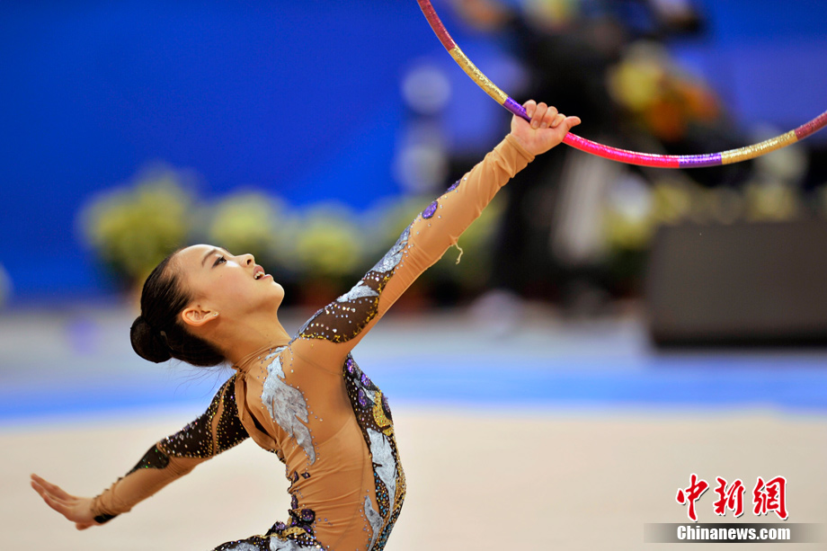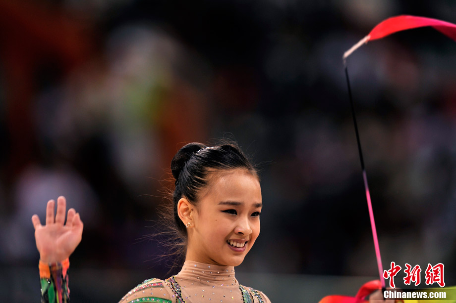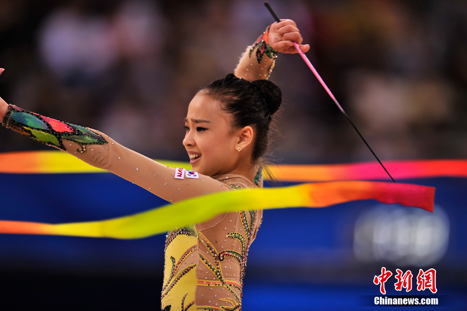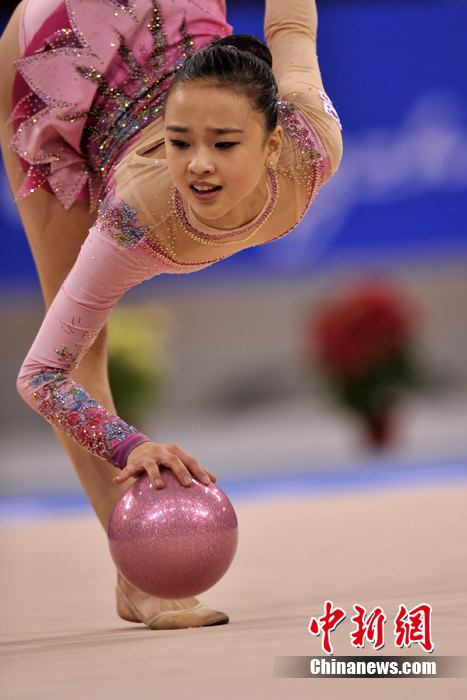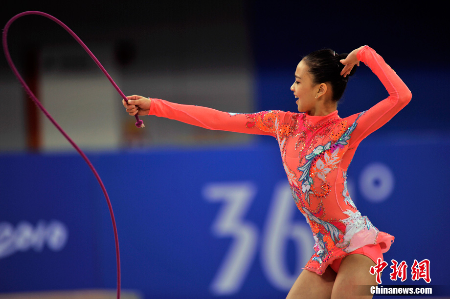 蘿莉,英文名為LOLI,本意指12歲以下的小女孩,后泛指天真可愛的小女生。15歲的韓國藝術體操選手孫妍在,憑借著修長的身材、姣好的面容,以及明亮的眼眸,一直被人稱為“藝術體操屆的金妍兒”。堪稱廣州亞運會“小蘿莉”中的NO.1。圖為孫妍在在亞運藝術體操比賽首日的精彩表現。中新網記者 金碩 攝