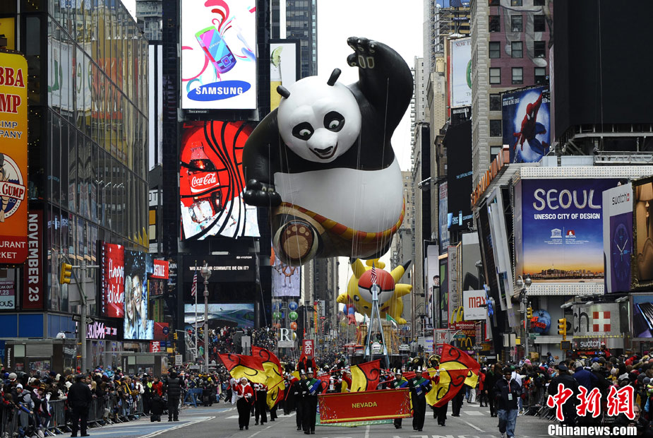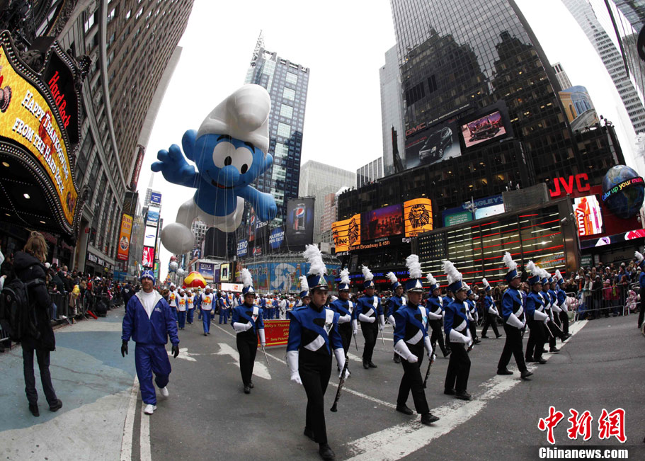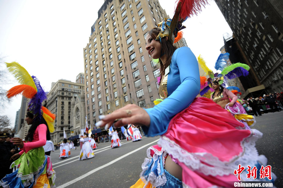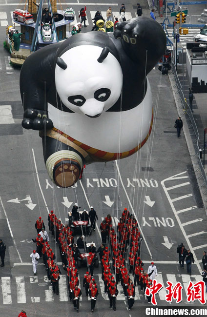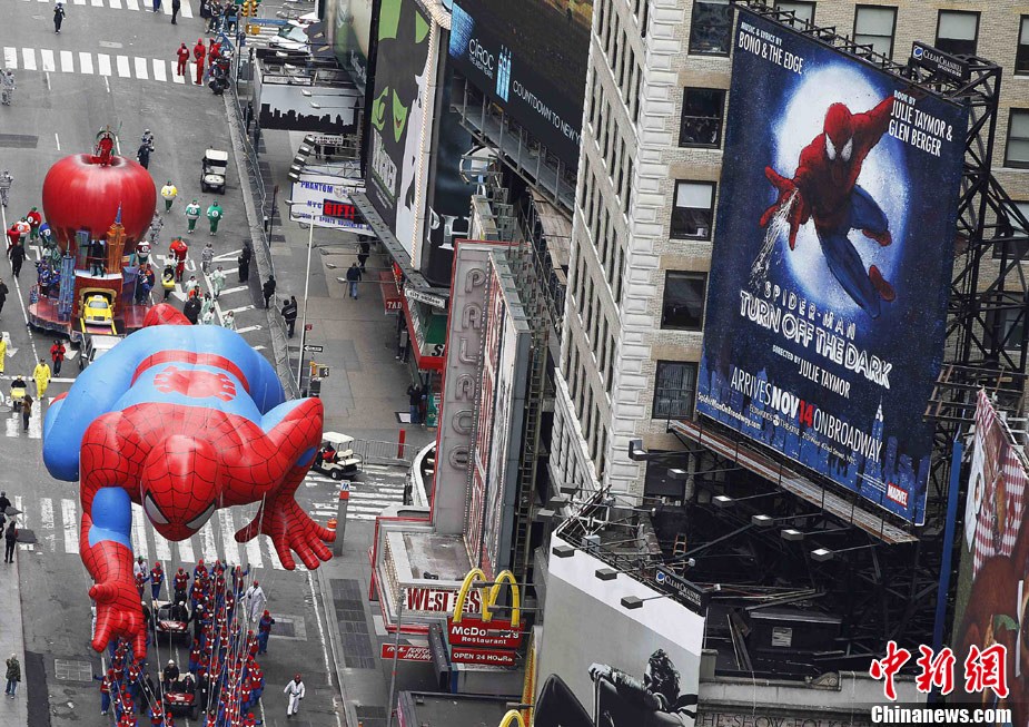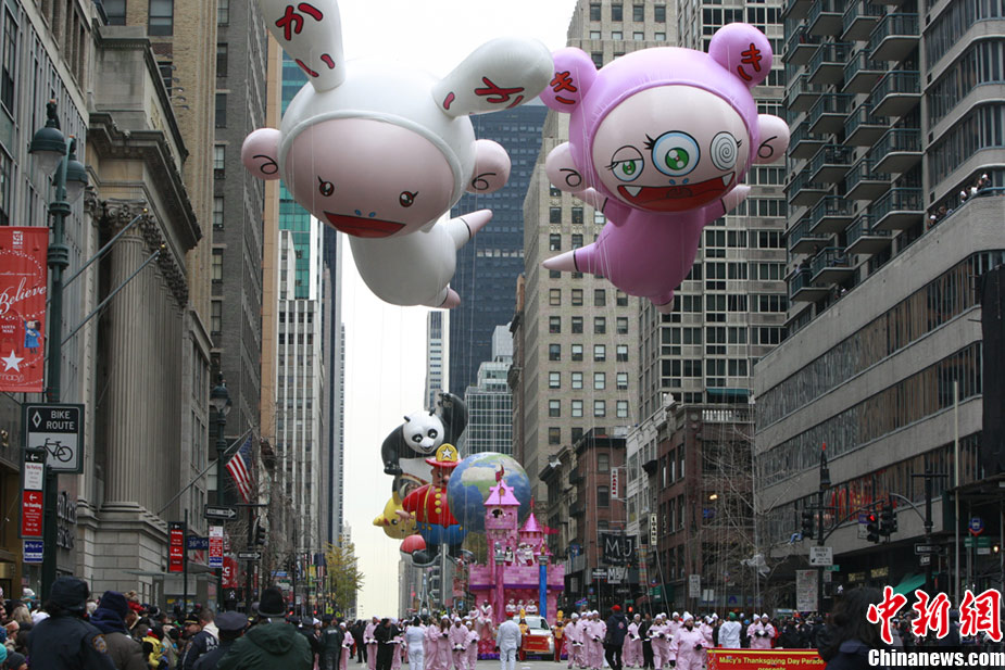 一年一度的紐約梅西感恩節大游行是美國最重要的節日游行之一,今年更是吸引了近300萬美國民眾走上曼哈頓街頭觀看,與游行隊伍共同狂歡。中新社發 魏晞 攝