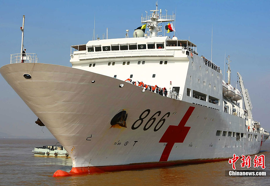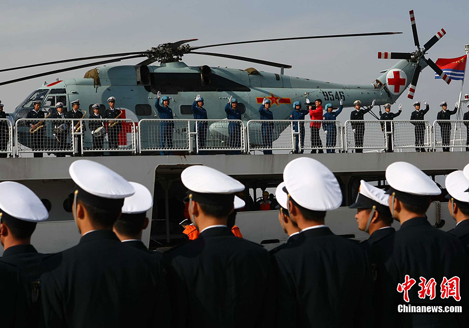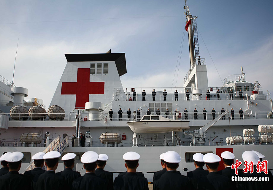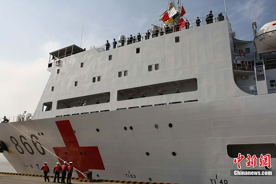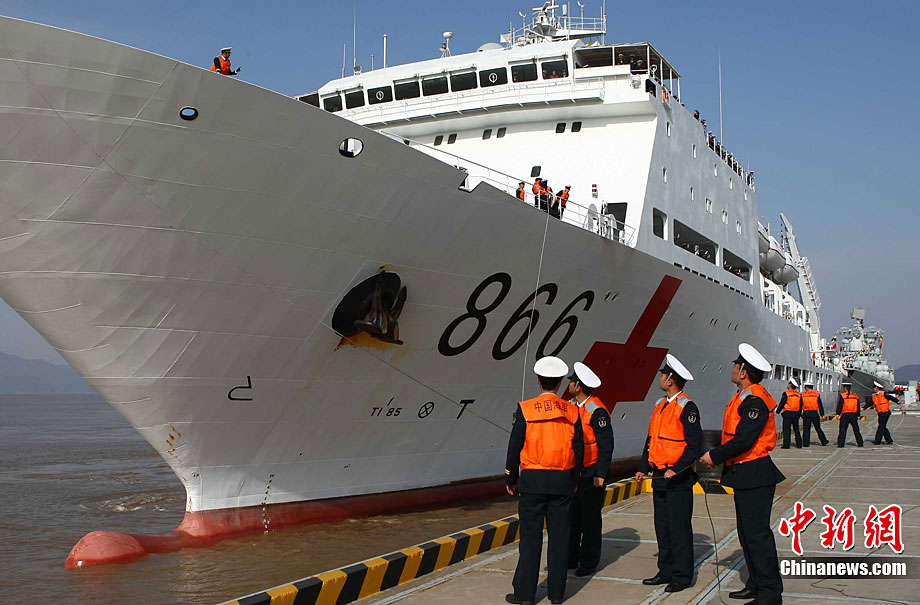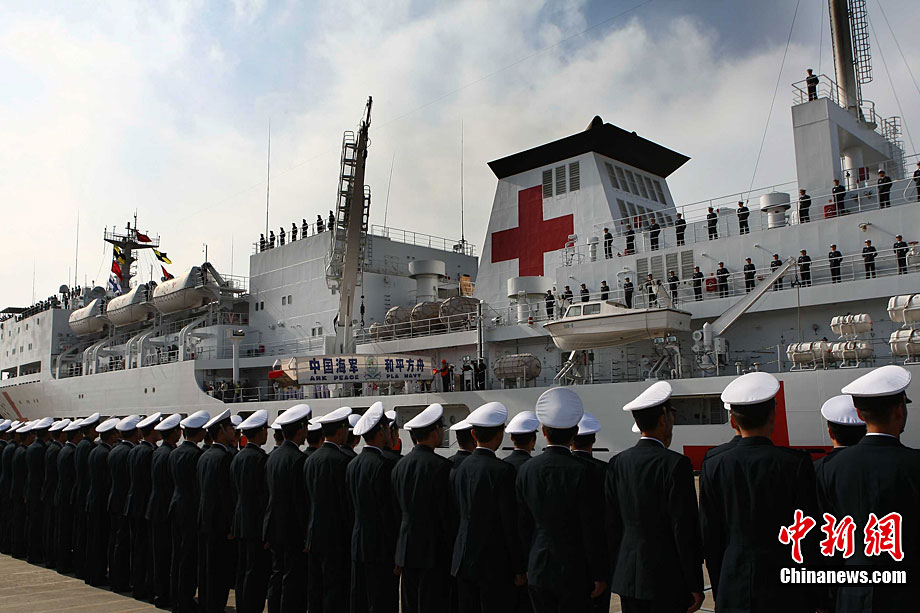 11月26日上午10時,中國海軍萬噸級醫院船“和平方舟”安全駛抵舟山軍港,這支歷時88天、航程17800海里的海上醫療隊、為海軍護航官兵和吉布提、肯尼亞、坦桑尼亞、塞舌爾和孟加拉等國民眾體檢2127人,門診診治12806人、醫療巡診1858人,輔助檢查15537人次,成功實施手術97例,贈送藥材36類790種。海軍副政委徐建中中將迎接執行任務的官兵歸來。宋吉河 攝
