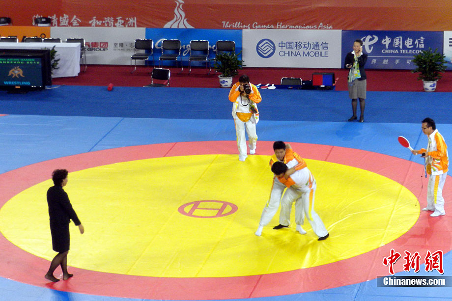 11月26日,廣州亞運(yùn)會(huì)藝術(shù)體操女子個(gè)人全能決賽,在亞運(yùn)城體育館舉行。哈薩克斯坦選手獲得第一名,烏茲別克斯坦選手奪得第二名,韓國(guó)選手第三名。中國(guó)選手鄧森悅和竇寶寶分別為第五第六名。 亞運(yùn)會(huì)藝術(shù)體操美麗的裁判。 中新社記者 任海霞 攝