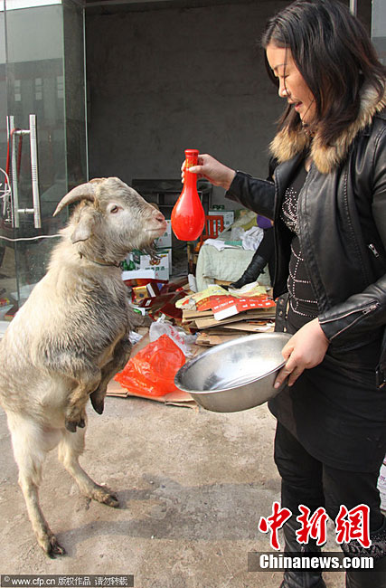11月29日,在山東省臨沂市羅莊區盛莊街道,“酒鬼山羊”在大口喝酒。據悉,臨沂市羅莊區盛莊街道亓女士家養了一只波爾山羊,平時和狗拴在一起,經常用酒店的剩飯菜喂狗,兩個月前,亓女士發現這只山羊開始和狗爭食吃,雞魚肉蛋樣樣品嘗,看熱鬧的村民試著用酒喂食,沒想這只山羊對啤酒和白酒來者不拒,而且酒后還撒潑到處頂撞人。朱武濤 攝 圖片來源:CFP視覺中國