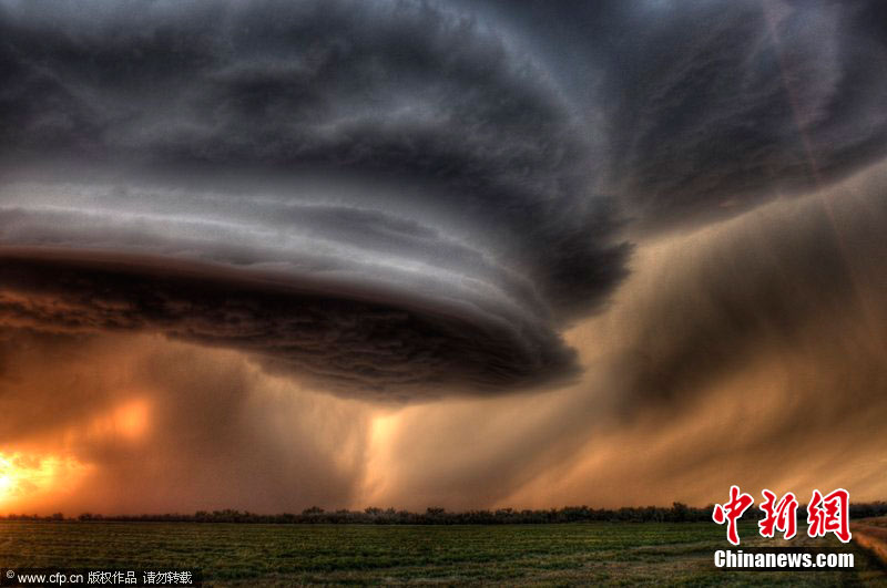 2010年12月2日消息,這些彰顯出大自然的無(wú)窮威力的照片都出自一名業(yè)余攝影師之手。34歲的Sean Heavey是一名電工,他拍攝風(fēng)暴照片的時(shí)間已經(jīng)長(zhǎng)達(dá)7年。今年,他拍攝的一張美國(guó)蒙大拿草原日落時(shí)分的超級(jí)龍卷風(fēng)照片為他贏得了《國(guó)家地理》的攝影獎(jiǎng)。圖片來(lái)源:CFP視覺(jué)中國(guó)
