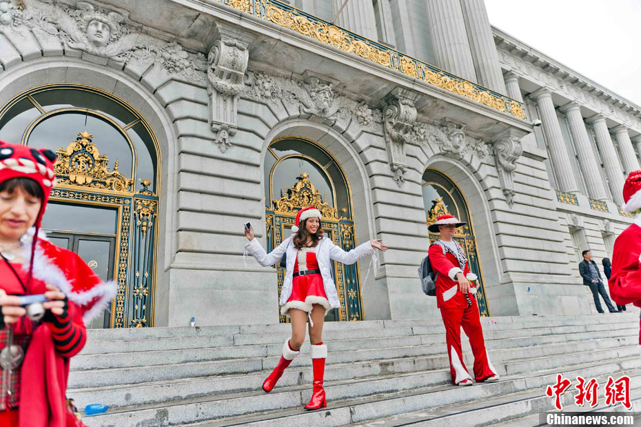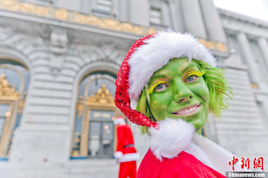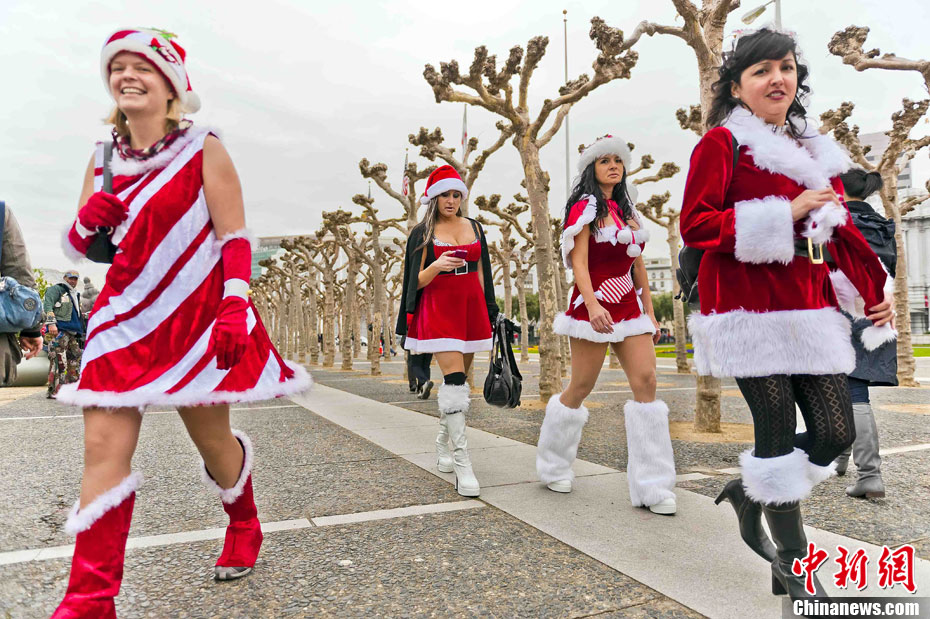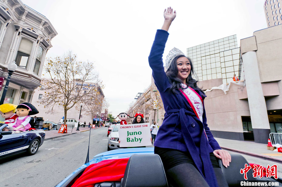 當地時間12月4日下午,美國加州奧克蘭舉行盛大兒童圣誕節游行,兒童動畫片中的卡通人物是游行隊伍的主角。圖為2010年度全美亞裔小姐劉彧莞與卡通人物們。中新社發 陳鋼 攝