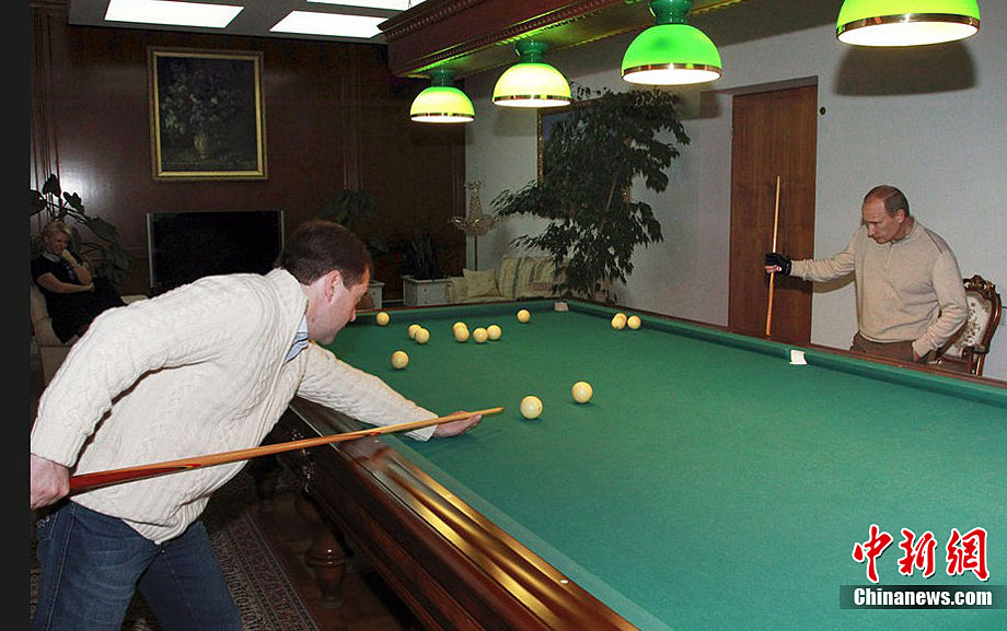 在瑞士蘇黎世贏得2018年世界杯主辦權(quán)的俄羅斯總理普京,當(dāng)天飛到俄羅斯黑海海濱城市索契,與正在當(dāng)?shù)貢娨獯罄偫碡惐R斯科尼的俄總統(tǒng)梅德韋杰夫會合。3日晚間,梅普組合興致勃勃地一起打臺球看電影。