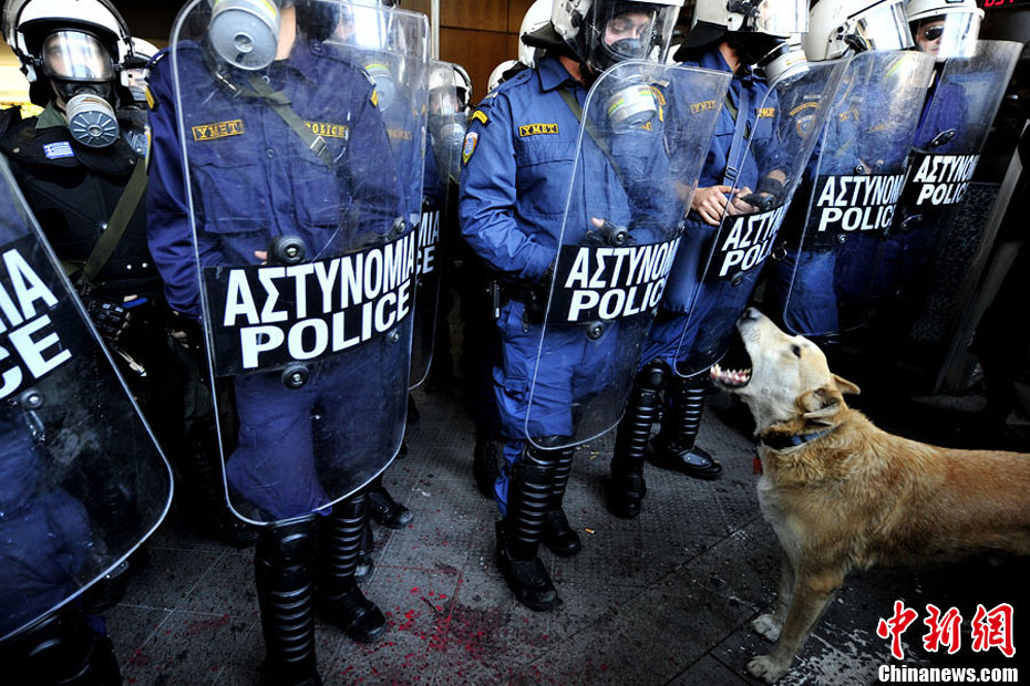 這只沒(méi)有主人的黃狗據(jù)說(shuō)從2008年開(kāi)始,參加過(guò)希臘不下10場(chǎng)的街頭抗議活動(dòng),似乎完全不怕催淚瓦斯、汽油彈等巨大爆炸聲響,對(duì)于四面八方的人聲尖叫,更像是樂(lè)在其中,甚至還懂得向警方吠叫,現(xiàn)在儼然成為希臘抗議人士的吉祥物,甚至還有網(wǎng)友為它建立專屬的Facebook主頁(yè)。