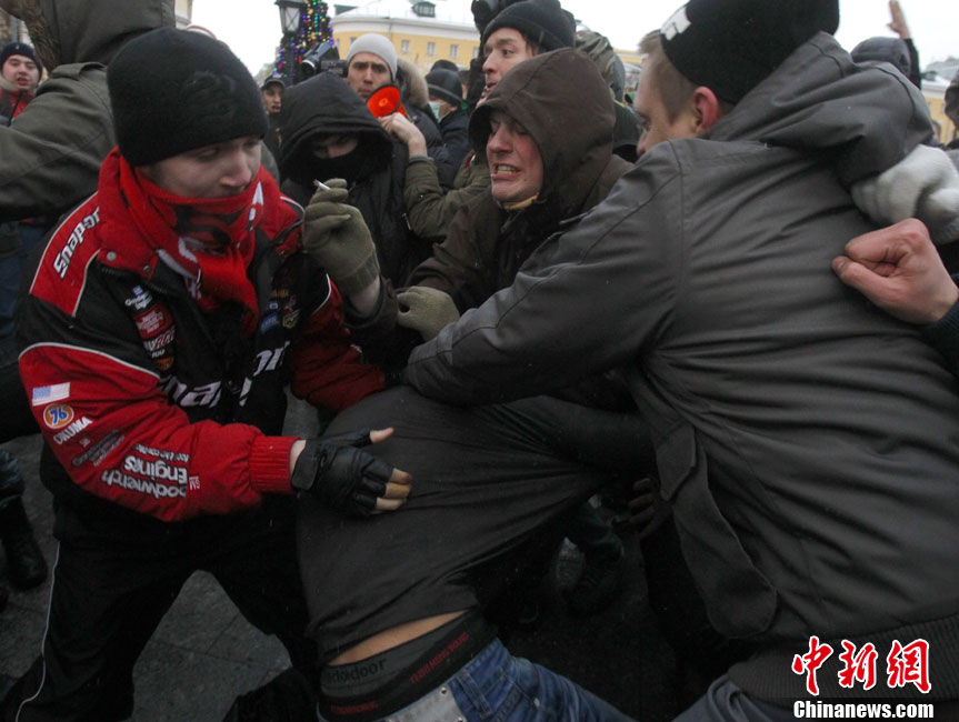 12月11日,俄羅斯首都莫斯科發(fā)生大規(guī)模球迷騷亂。 騷亂直接原因是此前于12月6日發(fā)生在市內(nèi)的一起斯巴達(dá)克俱樂部球迷與高加索人之間的群毆事件。事件導(dǎo)致一名斯巴達(dá)克俱樂部球迷死亡,11日中午,一些球迷聚集到莫斯科市中心馬涅什廣場(chǎng),聲稱為死亡球迷舉行悼念儀式,從而最終引發(fā)了目前這場(chǎng)有多達(dá)5萬名球迷參與的騷亂。