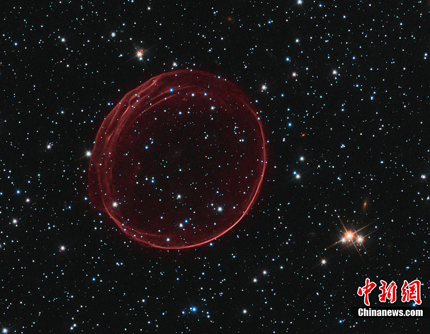 近日,美國哈勃太空望遠鏡拍攝到了美麗的星系間“圣誕大氣泡”的照片。這個“圣誕大氣泡”是由400年前發生的超新星爆炸的殘骸形成的,它像一個精致的“殼”一樣漂浮在太空中。據悉,這個“圣誕大氣泡”是我們的臨近星系——大麥哲倫星云(Large Magellanic Cloud)中的一顆超新星在爆炸時發出的沖擊波及其噴射出來的物質 ,大麥哲倫星云與地球的距離為16萬光年。科學家們將這個“圣誕大氣泡”氣圈命名為“SNR B0509-67.5”或者縮寫成“SNR 0509”。據悉,這個如氣泡狀的氣圈的直徑為23光年,并且正在以超過1100萬千米每小時的速度擴散。另外,哈勃太空望遠鏡拍攝到了“圣誕大氣泡”處于各種不同情況下的照片。