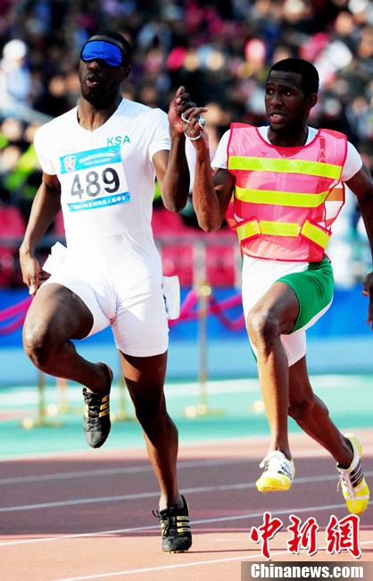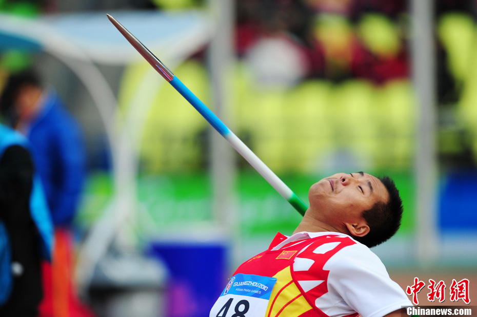 12月16日,廣州2010年亞殘運(yùn)會田徑賽進(jìn)入第3天,廣州遭遇寒流來襲氣溫降到最低2度,最高氣溫僅7度,亞洲選手在寒冷的氣候條件下參賽,錚錚鐵漢自我挑戰(zhàn)。中新社記者 陳文 攝