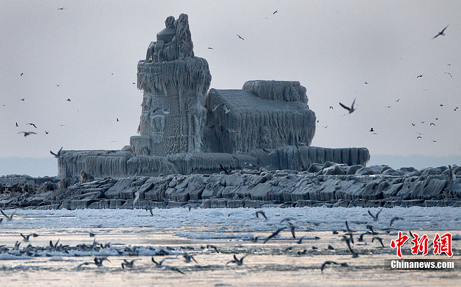 受暴風(fēng)雪影響,一座位于美國俄亥俄州伊利湖克利夫蘭港的燈塔近日完全被冰層覆蓋,從遠(yuǎn)處望去,仿佛一座冰雪雕刻的中世紀(jì)古堡。
